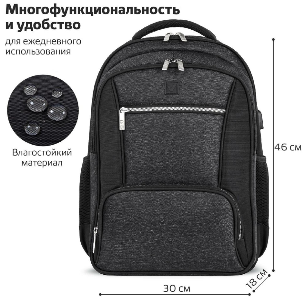 Рюкзак BRAUBERG FUNCTIONAL с отделением для ноутбука, 2 отделения, USB-порт, "Secure", 46х30х18 см, 270751 (270751)