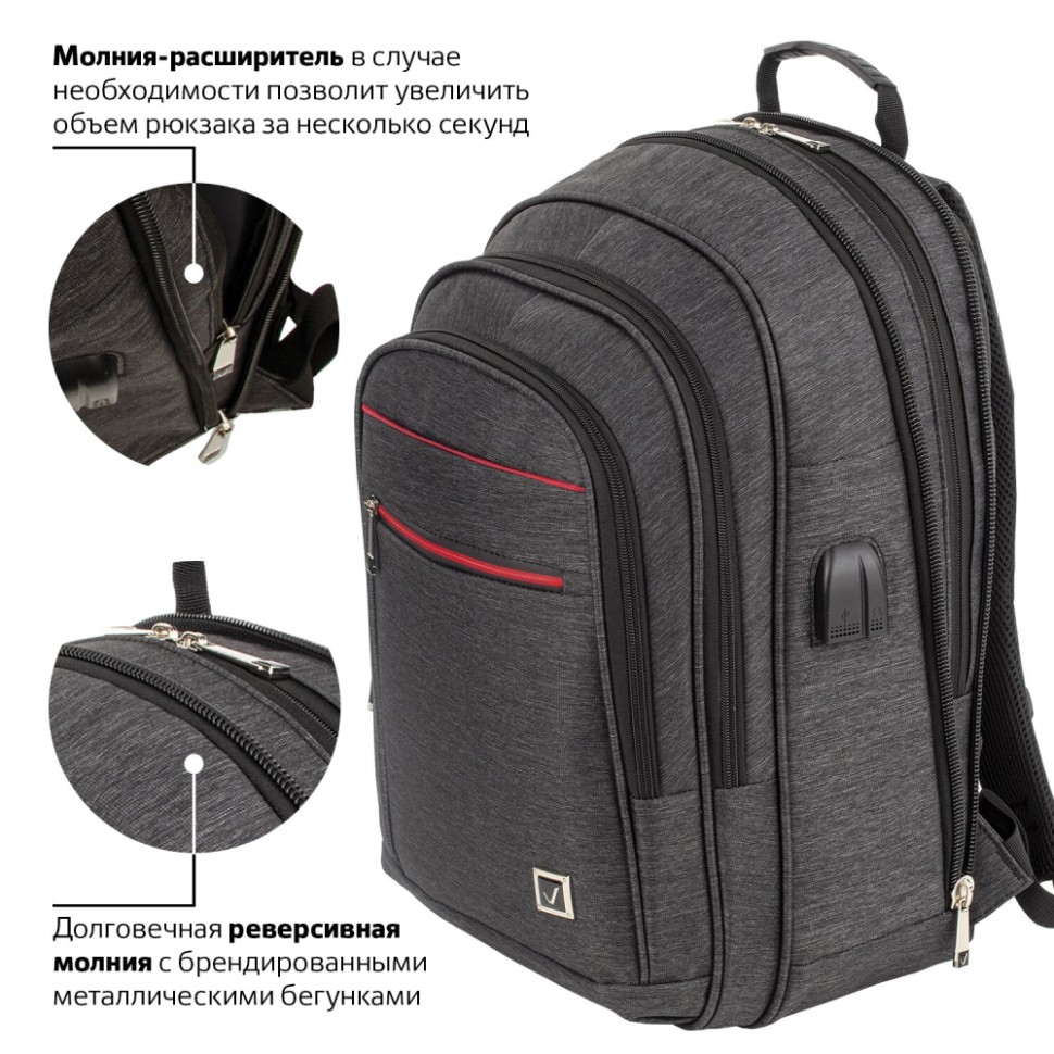 Рюкзак BRAUBERG FUNCTIONAL с отделением для ноутбука, 3 отделения, USB-порт, "Progress", 48х14х34 см, 229873 (229873)