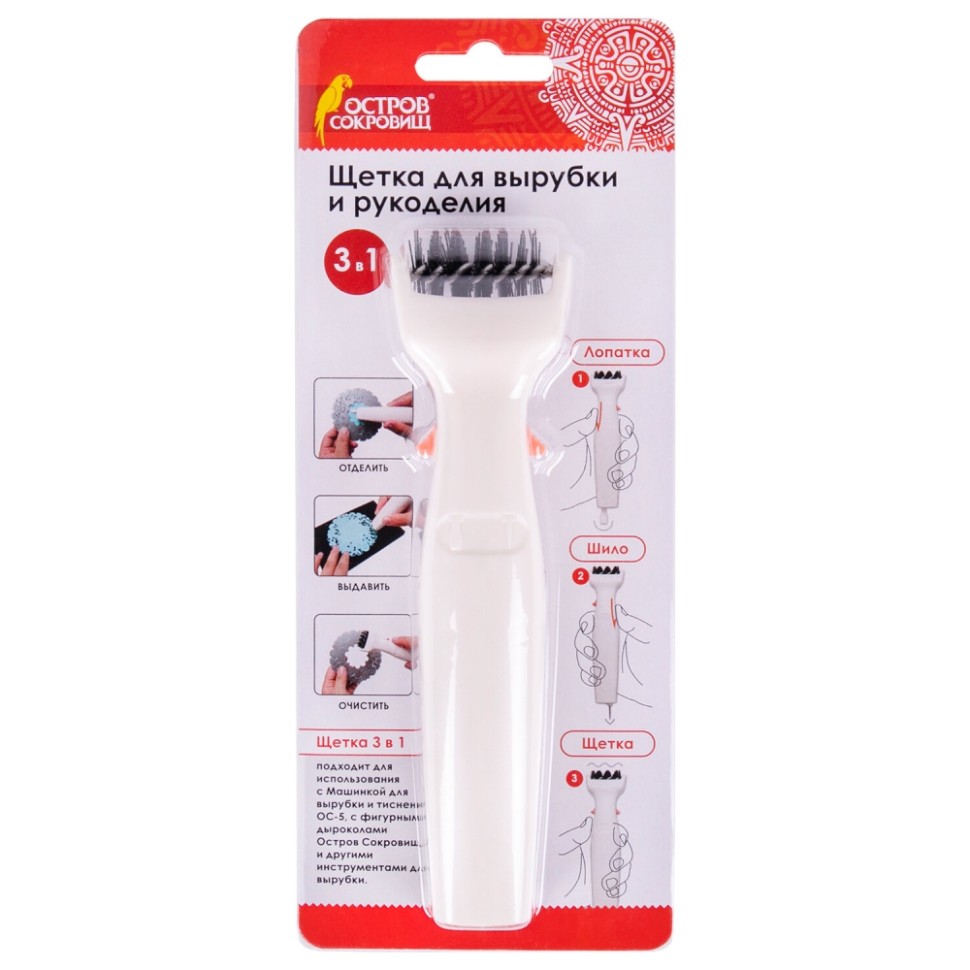 Щетка для вырубки и рукоделия "3 в 1" (щетка, лопатка, шило), ОСТРОВ СОКРОВИЩ, 663840, 860-111-001 (663840)