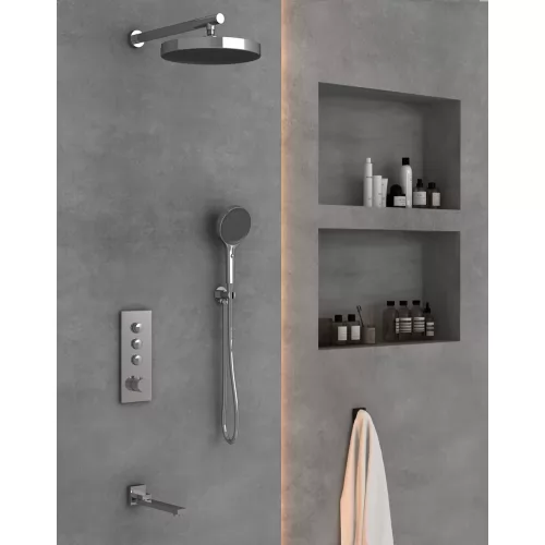 Душевая система Vincea VSFW-433TI2CH встраиваемая с термостатом - комплект для скрытого монтажа, включает в себя: встраиваемый смеситель, поворотный излив, тропический и ручной душ круглой формы. Термостатический смеситель позволяет с легкостью устанавливать и поддерживать комфортную температуру воды, имеет удобное кнопочное управление переключением режимов. Душевая система скрытого монтажа, выполненная из прочной латуни с хромированным покрытием, станет функциональным и эстетичным решением для организации пространства ванной комнаты.