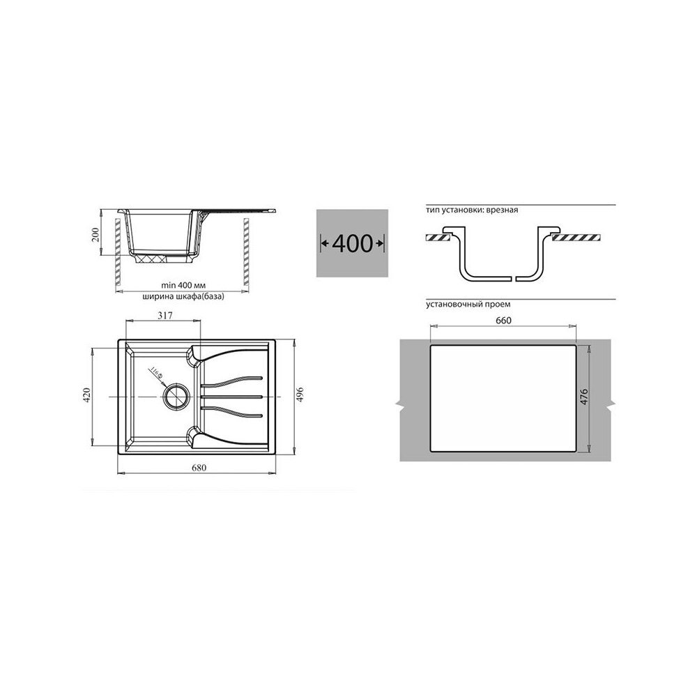 Длина мойки (слева направо), см68