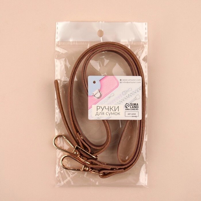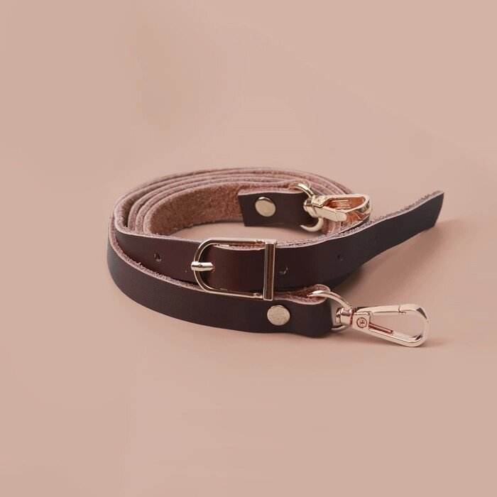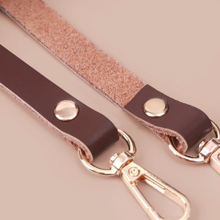 Ручка для сумки натуральная кожа 125*1,2см №5 коричневый/золотой 2 карабина АУ