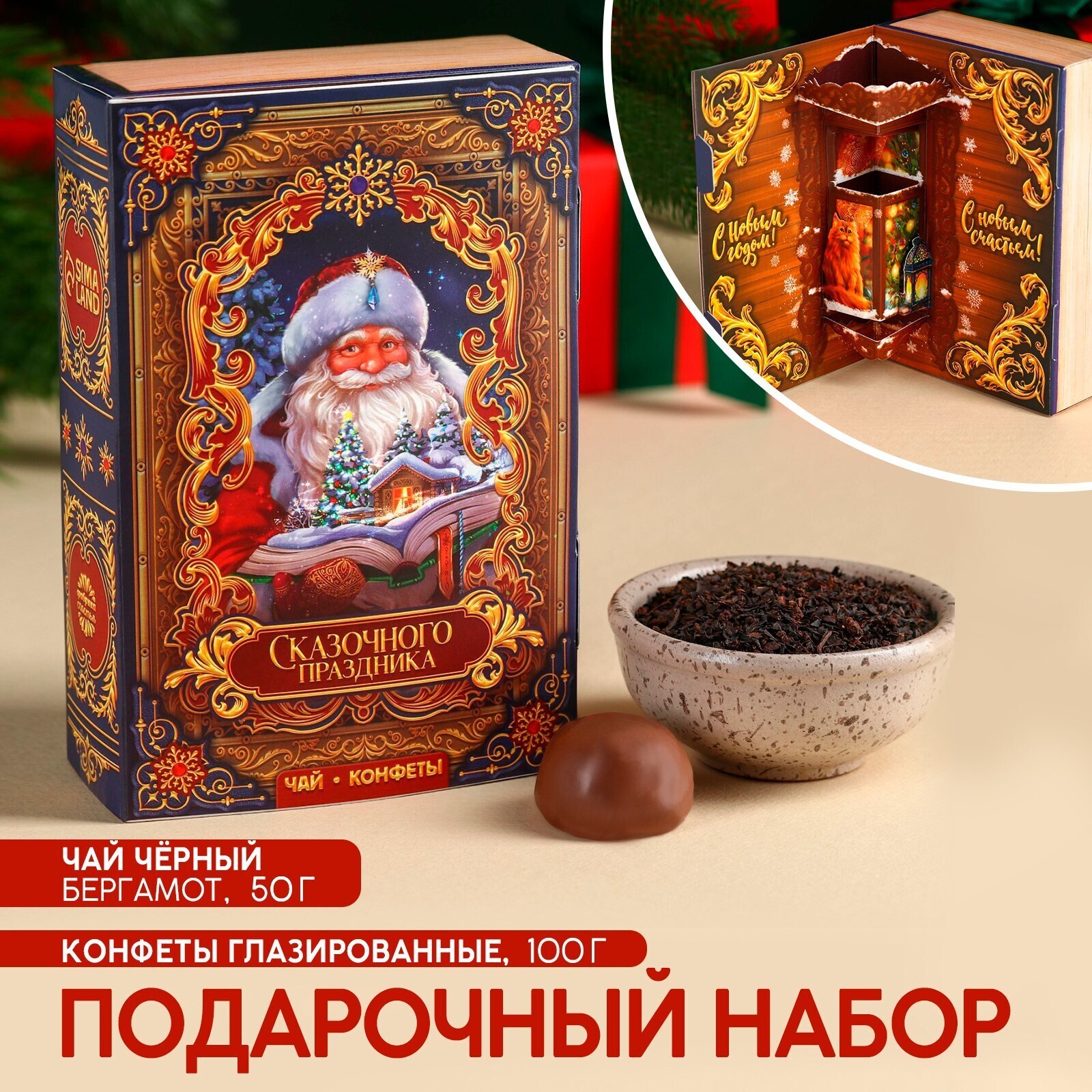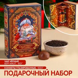 Подарочный набор «Сказочного праздника», чай чёрный с бергамотом 50 г., конфеты шоколадные 100 г.
