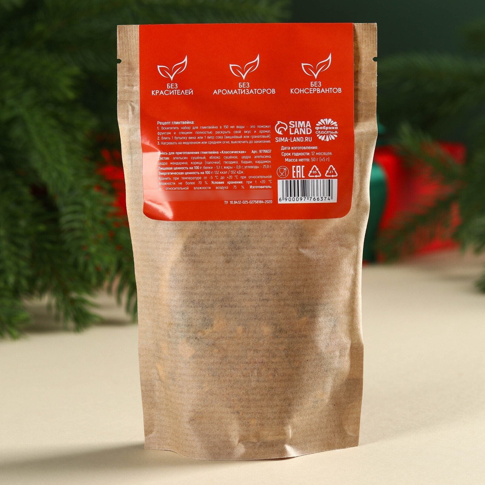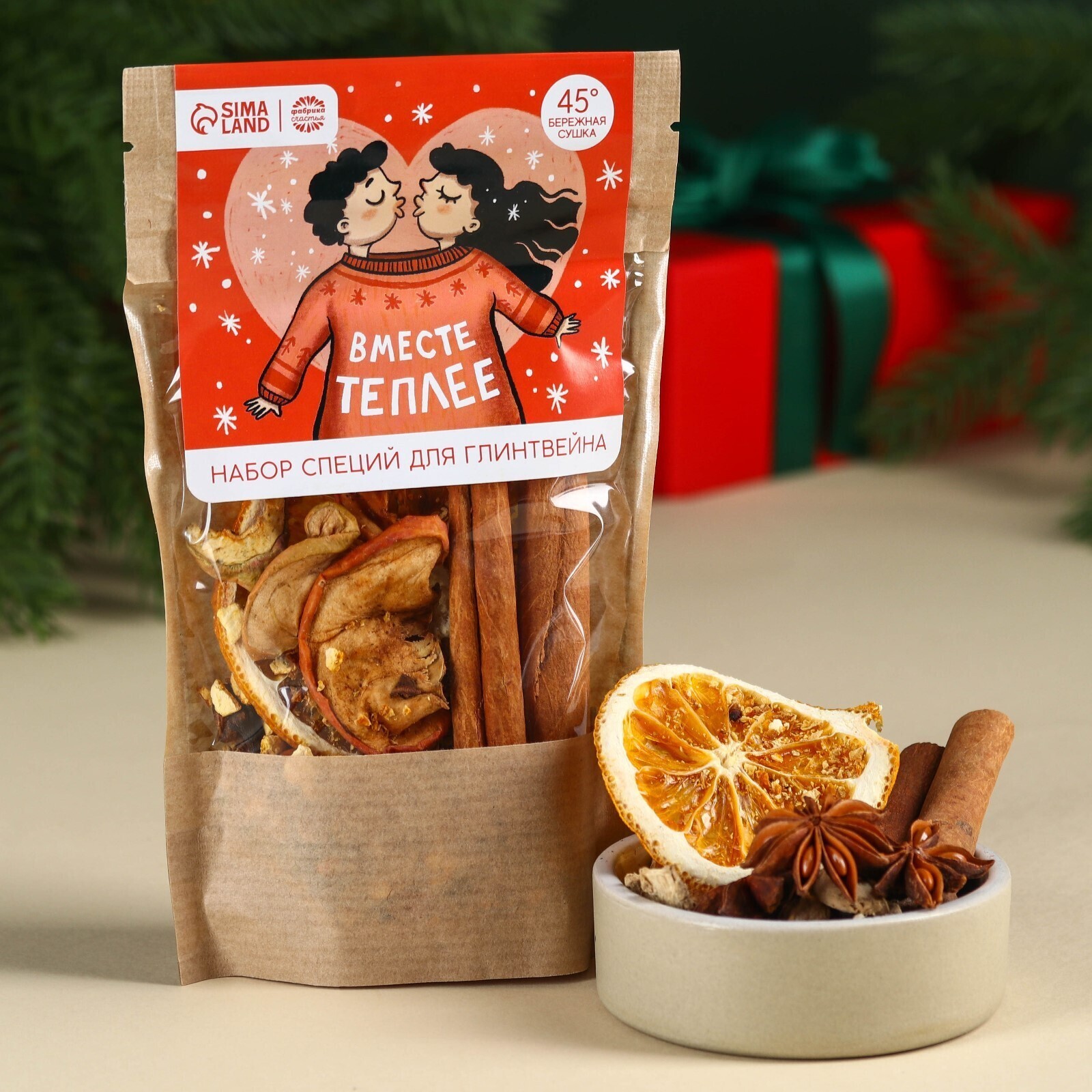 Состав: апельсин сушёный, яблоко сушёное, цедра апельсина, цедра мандарина, корица (палочки), гвоздика, бадьян, кардамон.