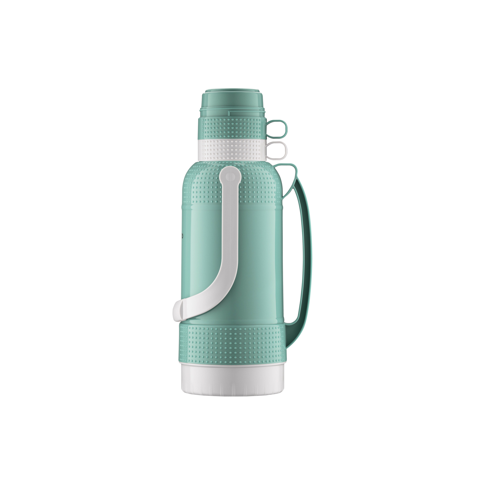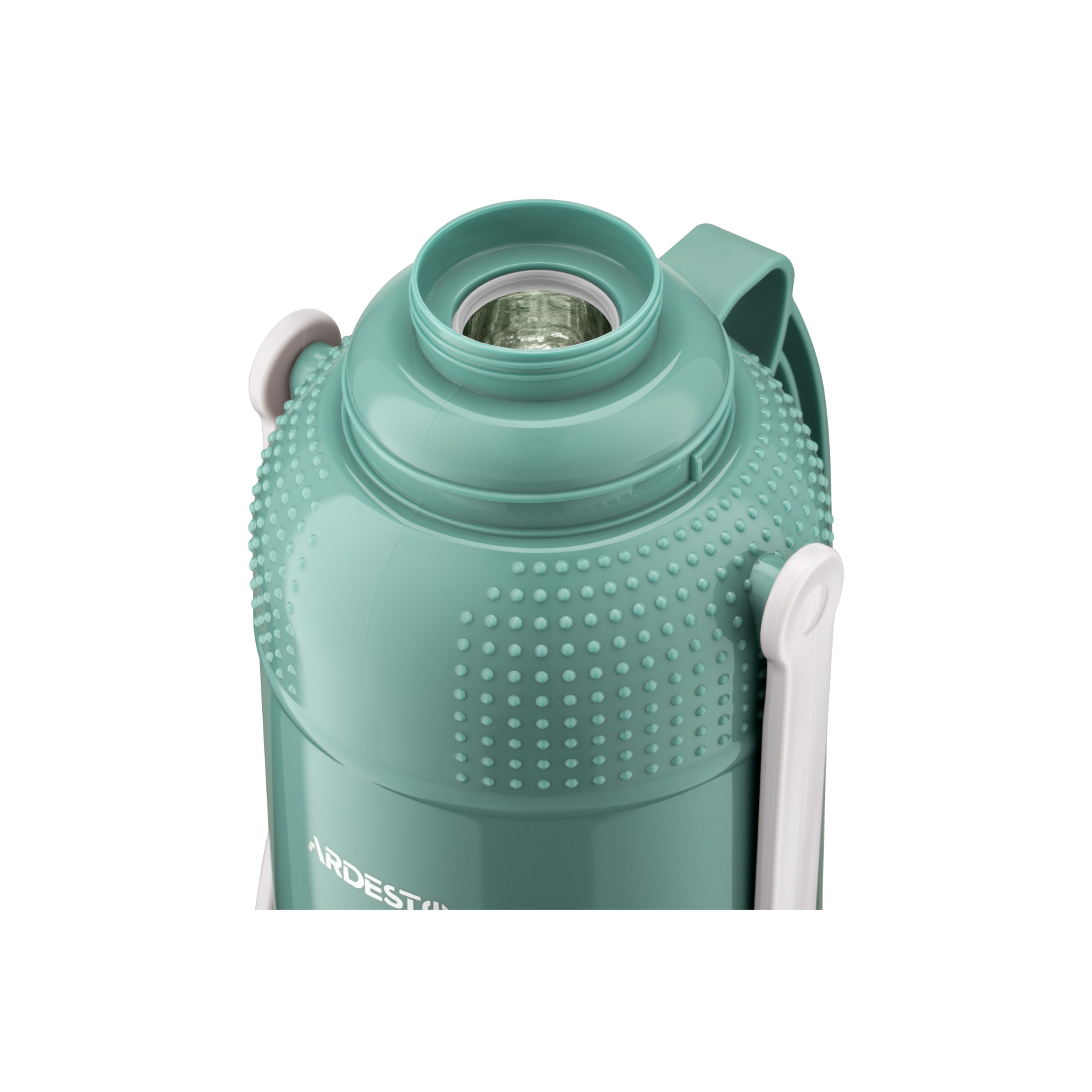 Термос ARDESTO Gemini Gourmet виготовлено з пластику зеленого кольору. Об’єм становить 3 200 мл. У комплекті 2 чашки. Скляна колба добре утримує тепло, не поглинає сторонніх запахів і не вступає в реакцію з продуктами. Термос оснащено кришкою з різьбою, що щільно прилягає, унеможливлюючи протікання та зберігаючи температуру гарячого та холодного напою 24 год. Догляд за посудом нескладний, проте мити в посудомийній машині не можна.