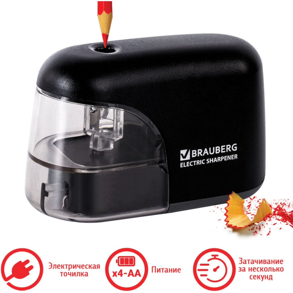 Нарушена упаковка! <209146> Точилка электрическая BRAUBERG "Black Jack", питание от 4 батареек АА, дополнительное сменное лезвие, 228424 (228424)