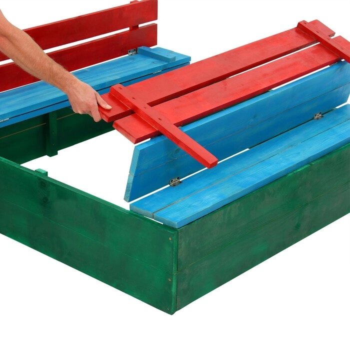 Песочница деревянная, с крышкой, 130 130 52 см, сосна, крашеная