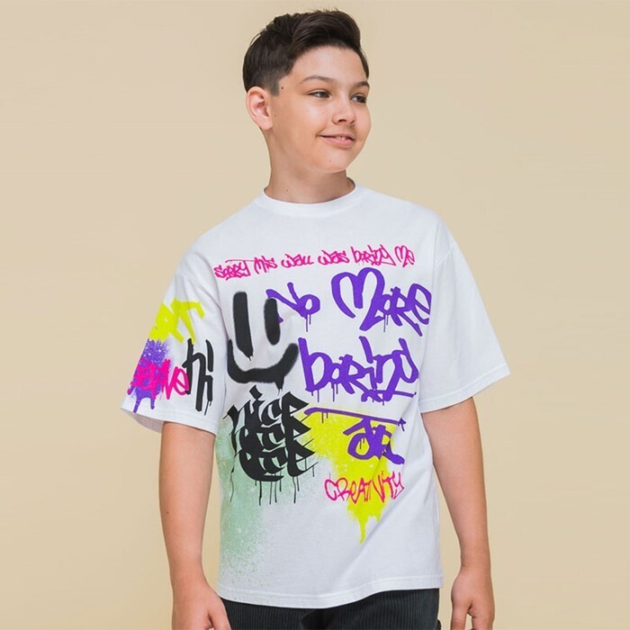 — Дополнена эластичным принтом в стиле граффити по переду и на левом рукаве