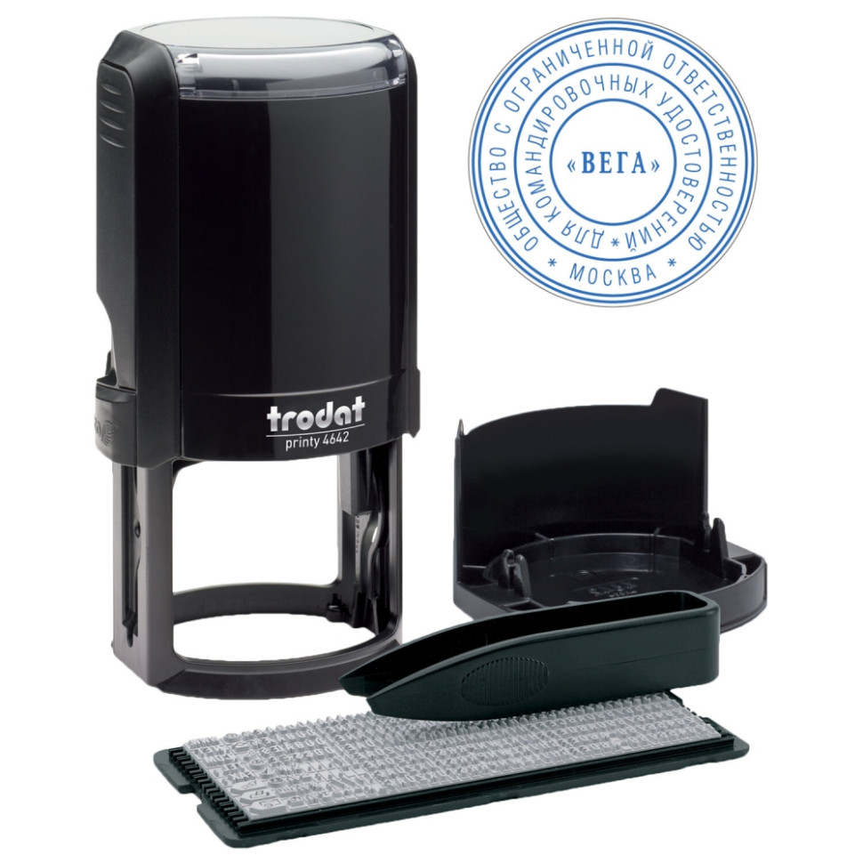 Печать самонаборная 2 круга, оттиск D=42 синий, TRODAT 4642 R2, крышка, КАССА В КОМПЛЕКТЕ, европодвес, 66624 (235550)
