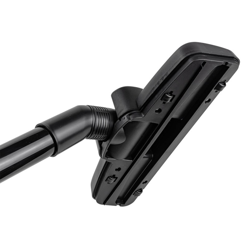 Содержит 1 насадку для пола, 1 насадку для труднодоступных мест, 2 удлинителя, крепление для намотки кабеля питания.