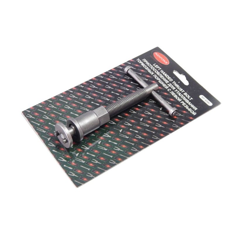 Винт с левой резьбой для утапливания тормозных поршней поставляется в блистере. Используется как самостоятельное приспособление или как запасная часть для восстановления работоспособности и расширения применяемости наборов для сведения тормозных цилиндров. Инструмент предназначен для корректного утапливания тормозных цилиндров с дисковой системой тормозов. Используется в качестве запасного или основного инструмента при сведении тормозных цилиндров. Приспособление поставляется в блистерной упаковке. Основные особенности инструмента: имеет левую резьбу и вращается по часовой стрелке, произведен из прочного металла, не подверженного износу и деформации, оптимален для частного пользования в гараже или в профессиональных автомастерских.