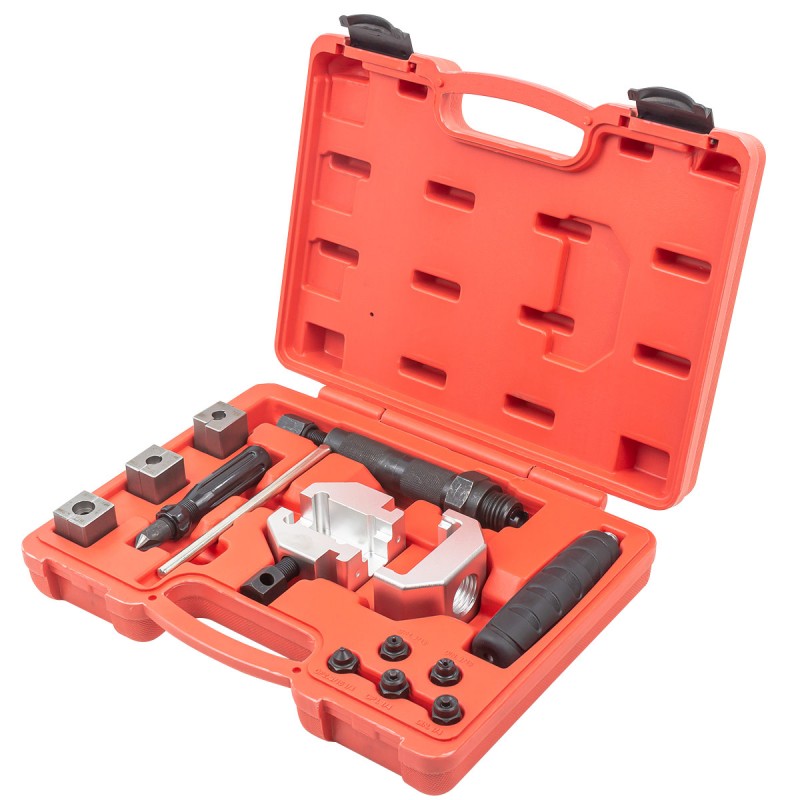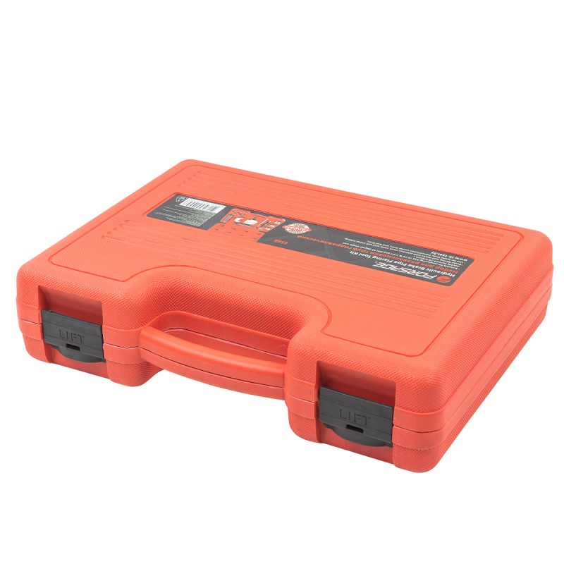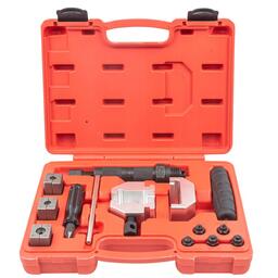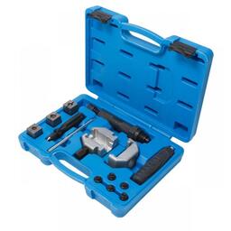 Набор включает в себя комплект приспособлений, применяющихся для изготовления элементов гидравлических систем траспортных средств. Инструменты позволяют развальцовывать трубки из цветных металлов и сталей. В набор входит гидравлический привод, который значительно облегчает работу оператору. Для удобства хранения и транспортировки, все комплектующие находятся в оригинальном пластиковом кейсе.