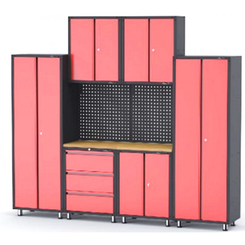 RF-01462 Комплект металлической гаражной мебели 9 пр. 460х2180х2670мм (шкаф навесной двухстворчатый 1 полка: 300х660х760-2шт, шкаф напольный двухстворчатый 3 п