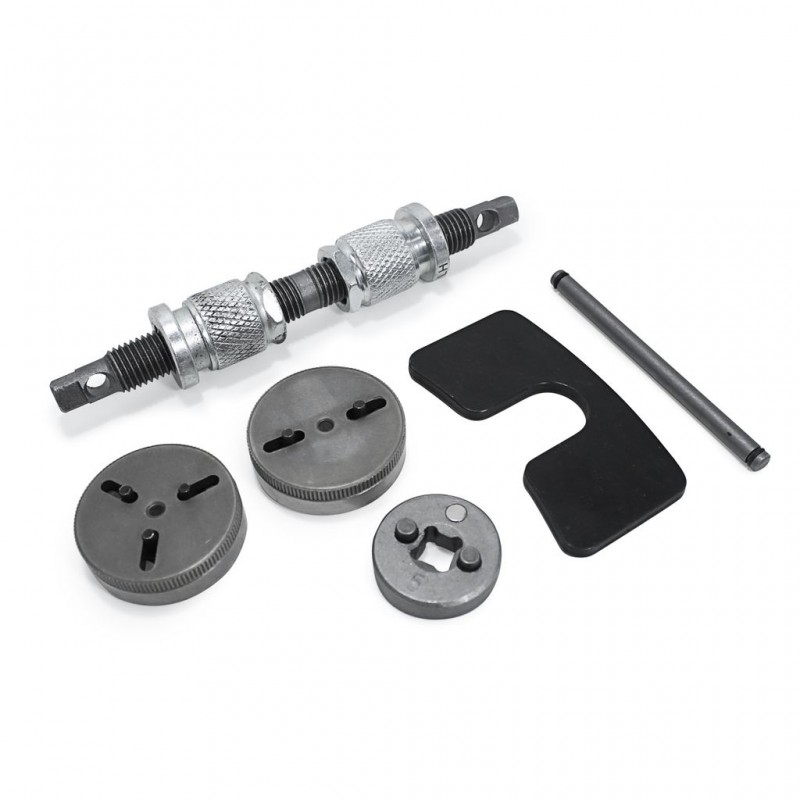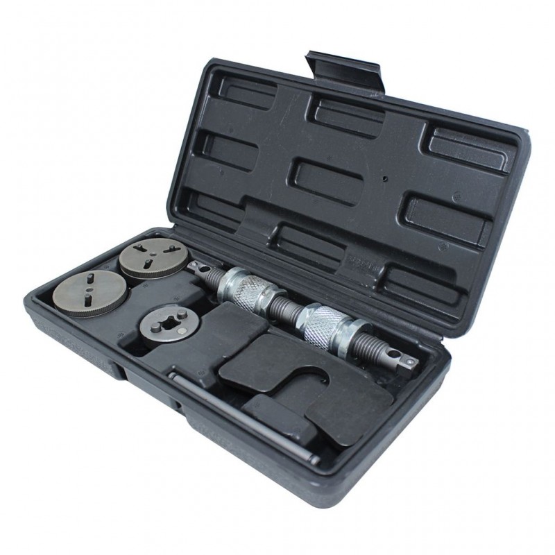 Набор из 8 предметов для обслуживания тормозных цилиндров предназначен для вдавливания цилиндров суппортов автомобилей при ремонте и обслуживании тормозной системы. Набор включает в себя различные инструменты, необходимые для выполнения различных операций по обслуживанию тормозных цилиндров, включая снятие, установку, регулировку и замену деталей. Наличие всех необходимых инструментов в одном наборе упрощает и ускоряет процесс обслуживания. Инструменты изготовлены из высококачественной инструментальной стали. Это обеспечивает долговечность и надежность инструментов при выполнении задач по обслуживанию тормозных цилиндров.