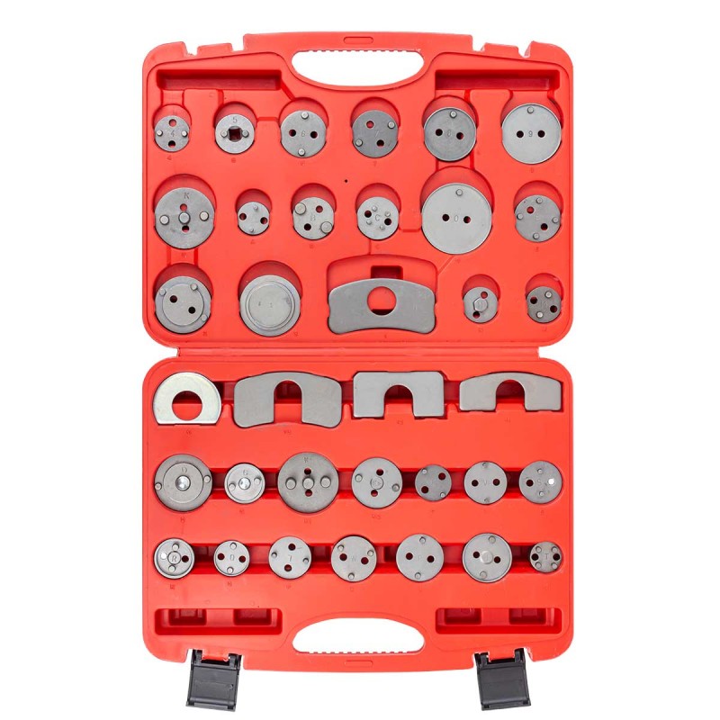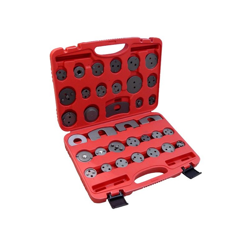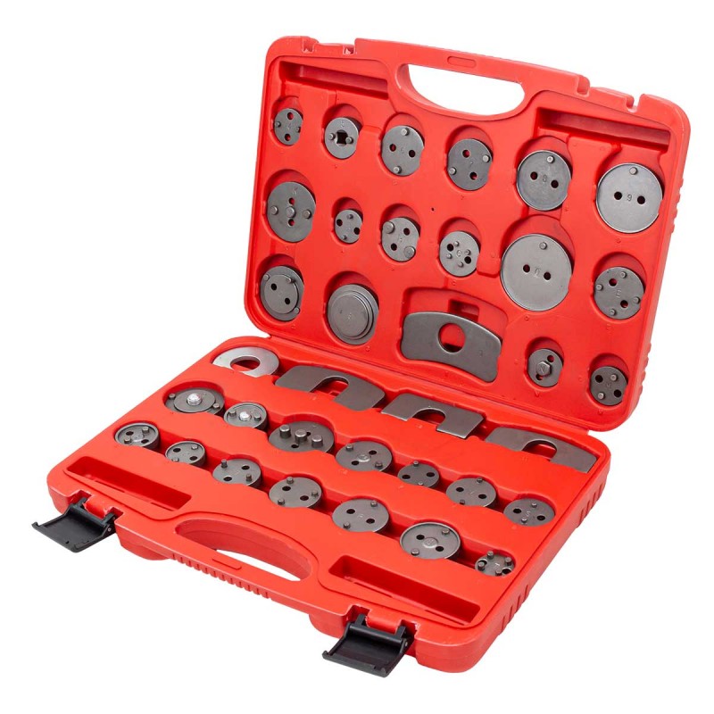 Набор насадок для обслуживания тормозных цилиндров 35 предметов в кейсе выполнен из высококачественной стали, что даст возможность пользоваться ими многие годы. предназначен для обслуживания тормозной системы. Используется в полноприводных автомобилях, микроавтобусах и легковых транспортных средствах. Насадки позволяют корректно утапливать поршни тормозных цилиндров. Основные преимущества набора: детали из прочного металла рассчитаны на длительный период эксплуатации; насадки с различным диаметром подходят для большинства автомобилей известных марок. Для комфортной транспортировки комплект поставляется в пластиковом кейсе с ручкой. Инструменты хранятся в специальном ложементе, что исключает риск утери после проведения работ.