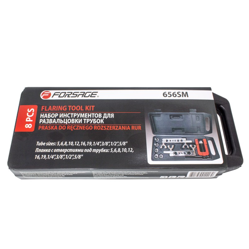 F-656SM Набор для развальцовки трубок 8пр.(5,6,8,10,12,16,19,1/4,3/8,1/2,5/8 две планки с отверстиями под трубки) в кейсе.