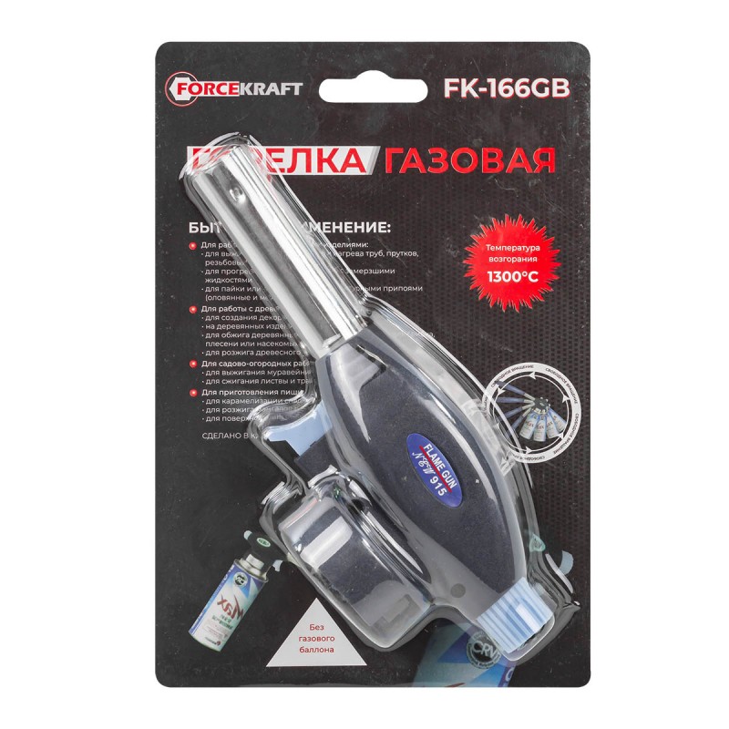 FK-166GB Горелка газовая на цанговый баллон (t-1300гр., L-170мм), в блистере