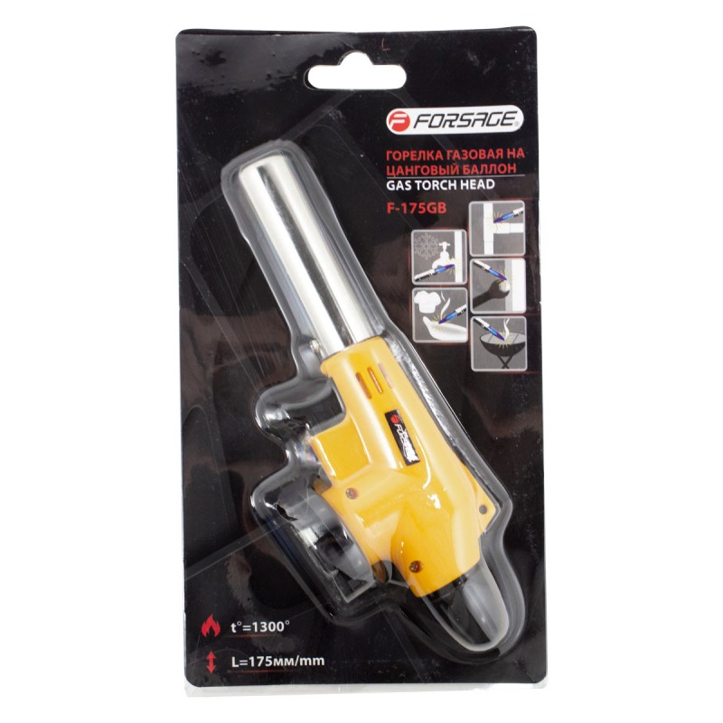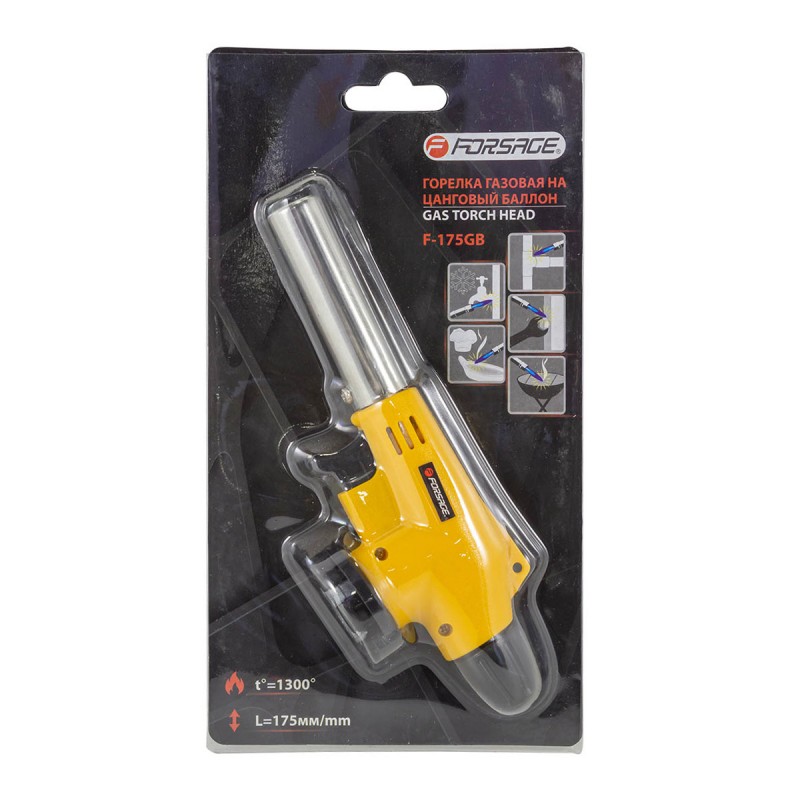 F-175GB Горелка газовая на цанговый баллон (t-1300гр., L-175мм), в блистере
