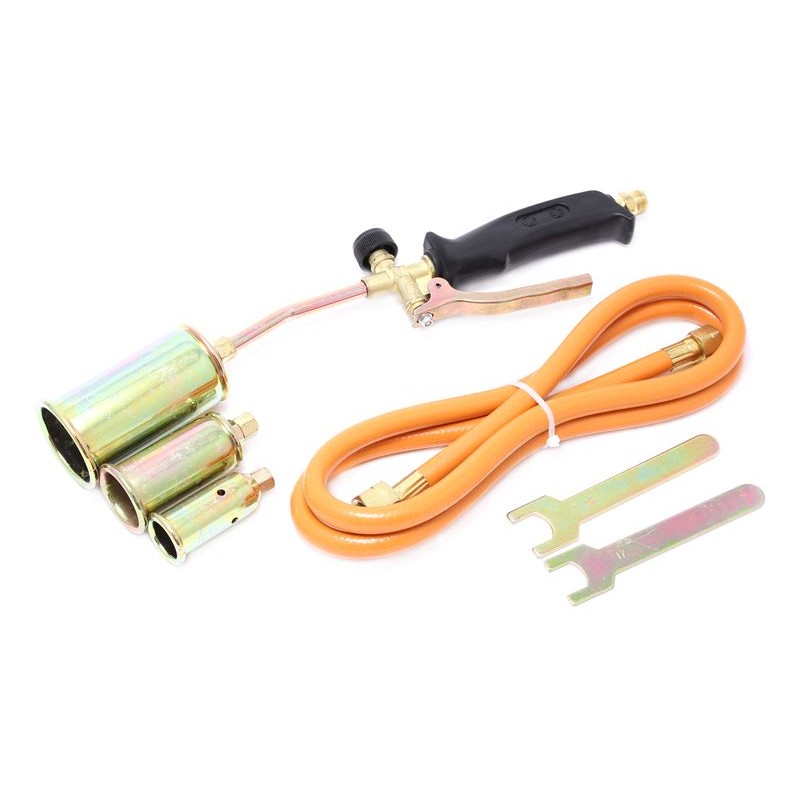 Инжекторная кровельная газовая горелка. Пригодится при проведении гидроизоляционных работ, обжига и очистки металлических поверхностей. Применяется для расплавления битума, который в дальнейшем идет на восстановление кровли. Используется во время ремонта кабельных линий; при взаимодействии с толстостенными термоусаживаемыми изделиями и трубками; для нагрева изделий и заготовок из черных, цветных металлов; обжига краски; сушки различных литейных форм. Помимо горелки(390 мм) в набор входят: 1 шланг- длиной 1.5 м; трубка без насадок длиной-90мм; 3 насадки диаметром- 25 мм, 35 мм, 50 мм; 2 ключа для монтажа насадок. Комплект подходит для широкого спектра работ.