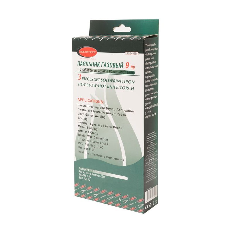 RF-249BSI Паяльник газовый в наборе с насадками и приспособлениями 9пр., в кейсе