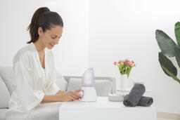 ОписаниеДля сияющей кожи: сауна для лица бережно открывает поры и подготавливает кожу к очистке. Дополнительный оздоровительный эффект достигается за счет приятной ароматерапии и ингаляции. Плавная регулировка выхода пара. 2 уровня мощности.