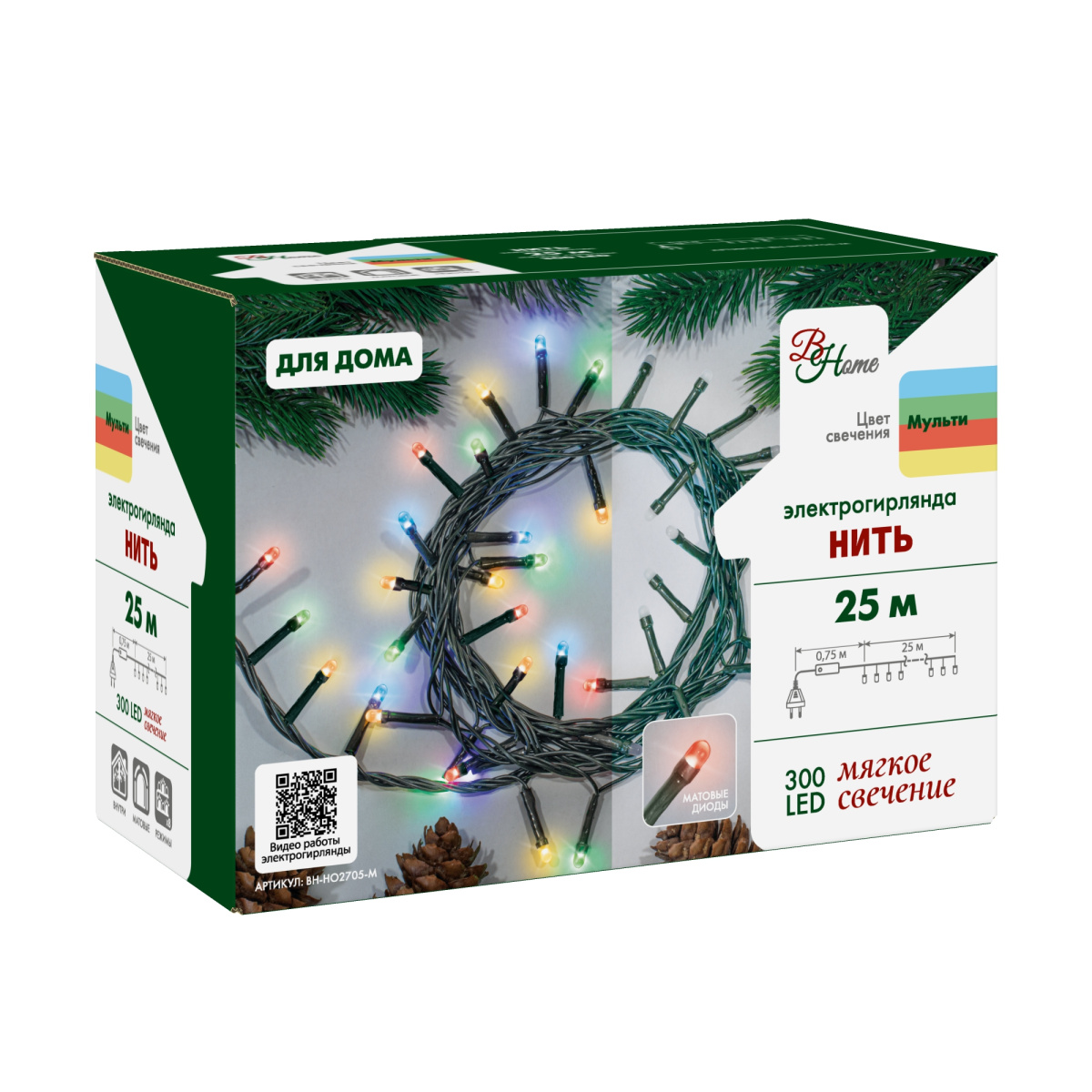 Электрогирлянда B&H Нить 25м 300 разноцв. мат. светодиодов, арт BH-HO2705-M