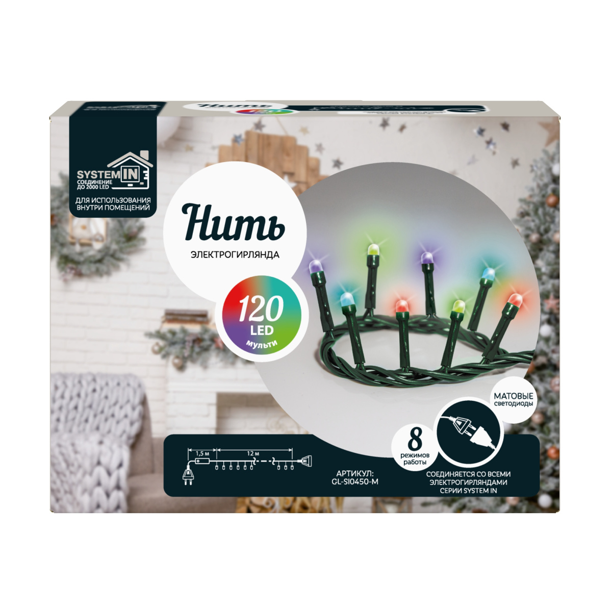 Электрогирлянда GLOS Нить, 12м, 120 разноцв. матовый, арт. GL-SI0450-M