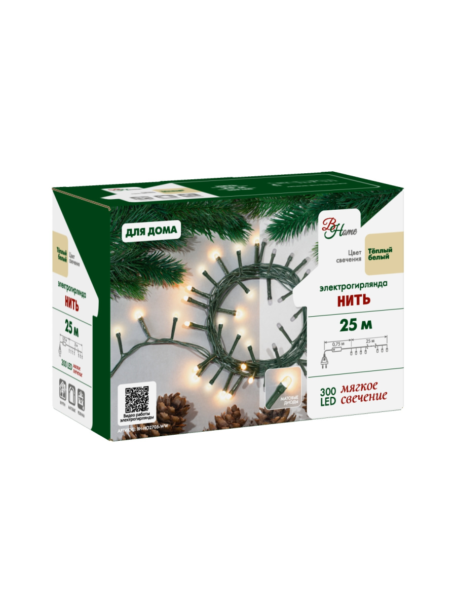 Электрогирлянда Нить, 25 м, 300 тёплых белых матовых светодиодов, 8 режимов работы, для использования внутри помещений. "Электрогирлянда Нить, 25 м, 300 тёплых белых матовых светодиодов, для использования внутри помещений. ВН-Номе - серия электрогирлянд, разработанная специально для дома.Круглые матовые светодиоды наполняют пространство мягким приятным глазу свечением и создают уютную и спокойную атмосферу.. Материал: ПВХ, металл, пластик.