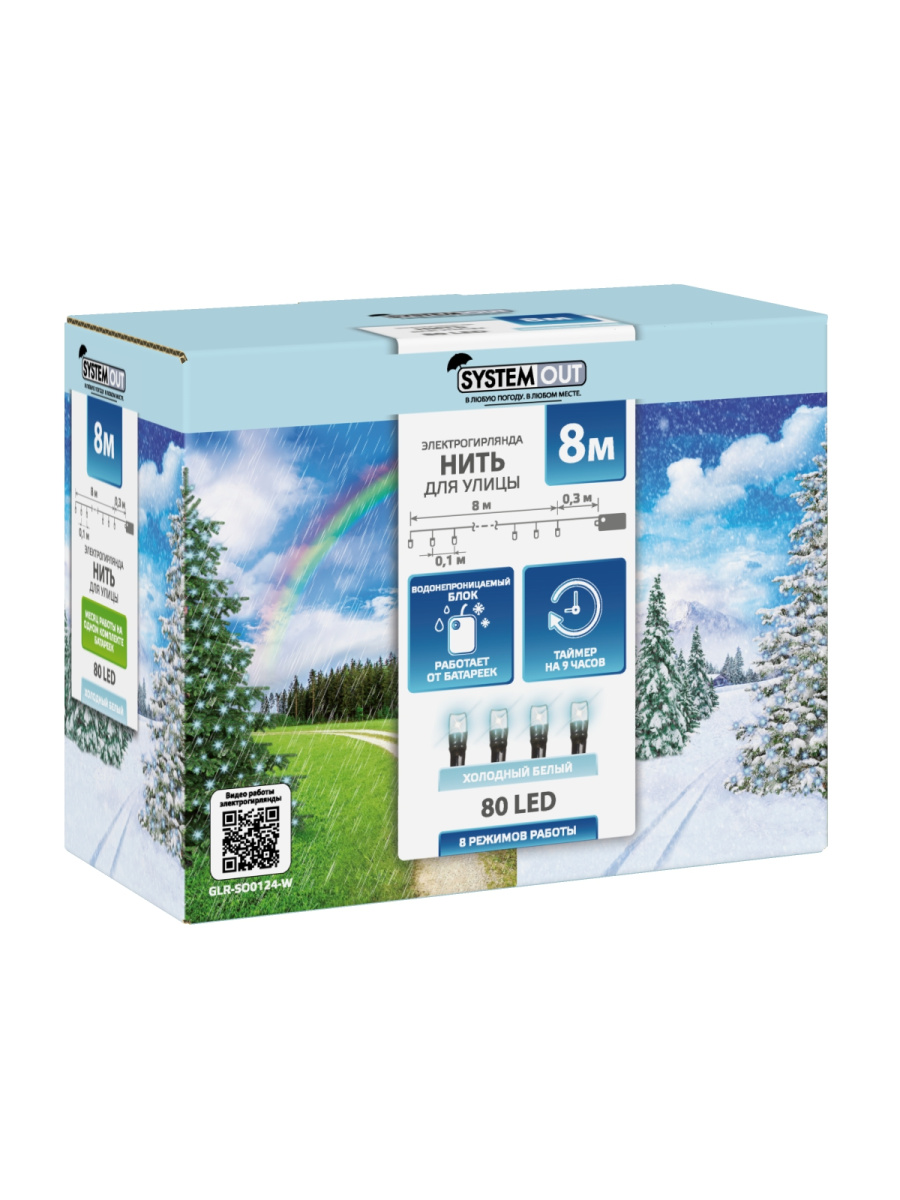 Электрогирлянда GLOS Нить 8м, 80 хол. бел. светодиодов, арт. GLR-SO0124-W