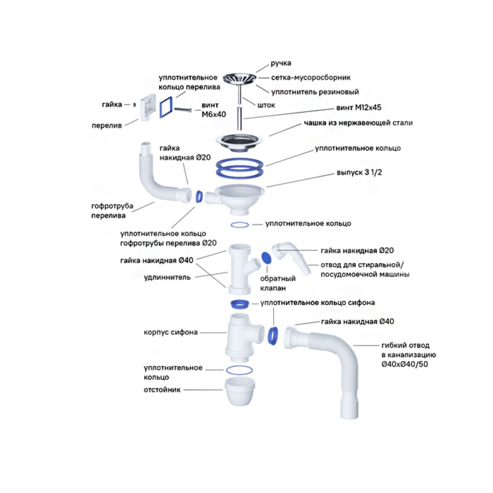 • Вид трубки сифона Гофра