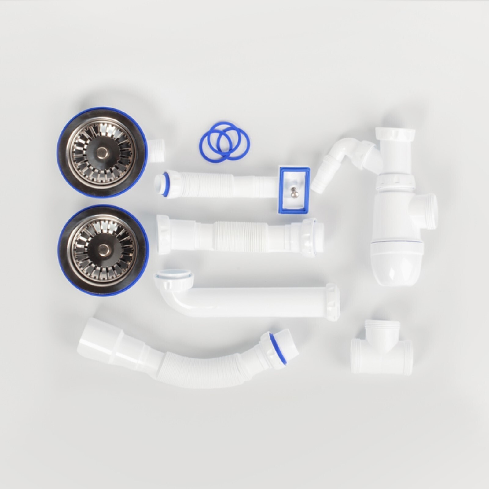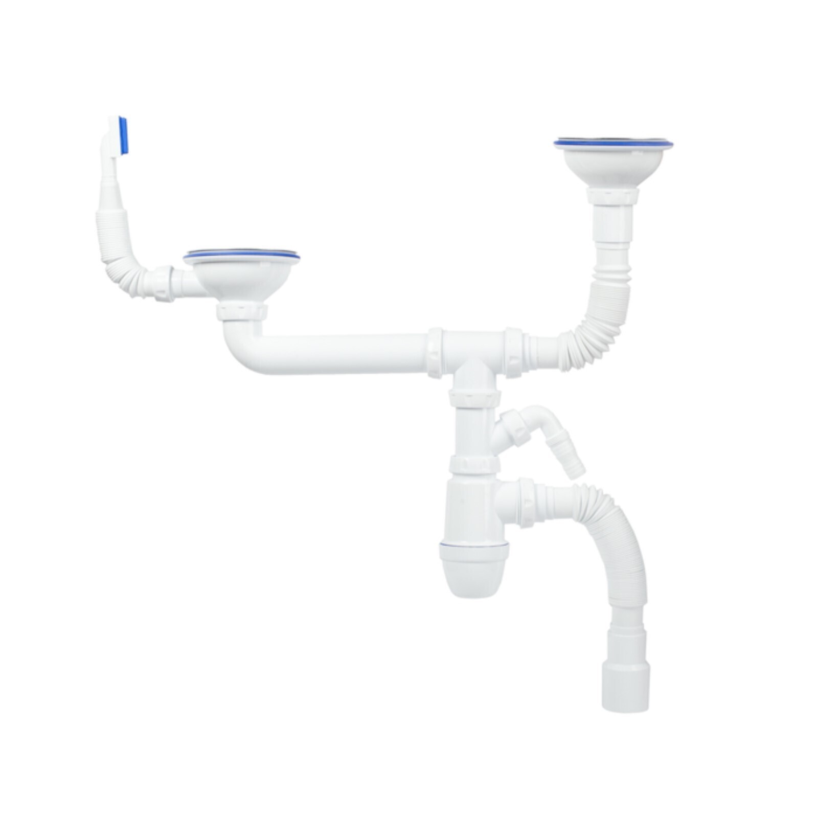 Сифон для двойной мойки IDDIS Kitchen Line, выпуск 3 1/2 с переливом и отводом