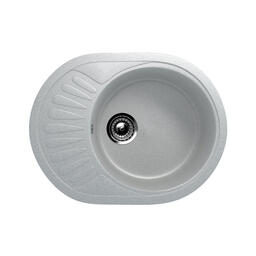Мойка изготовлена из искусственного камня. Материал состоит из натурального мрамора (80%) и полимеров (20%). Он выдерживает резкие перепады температуры, ударопрочный, хорошо поглощает шум воды.