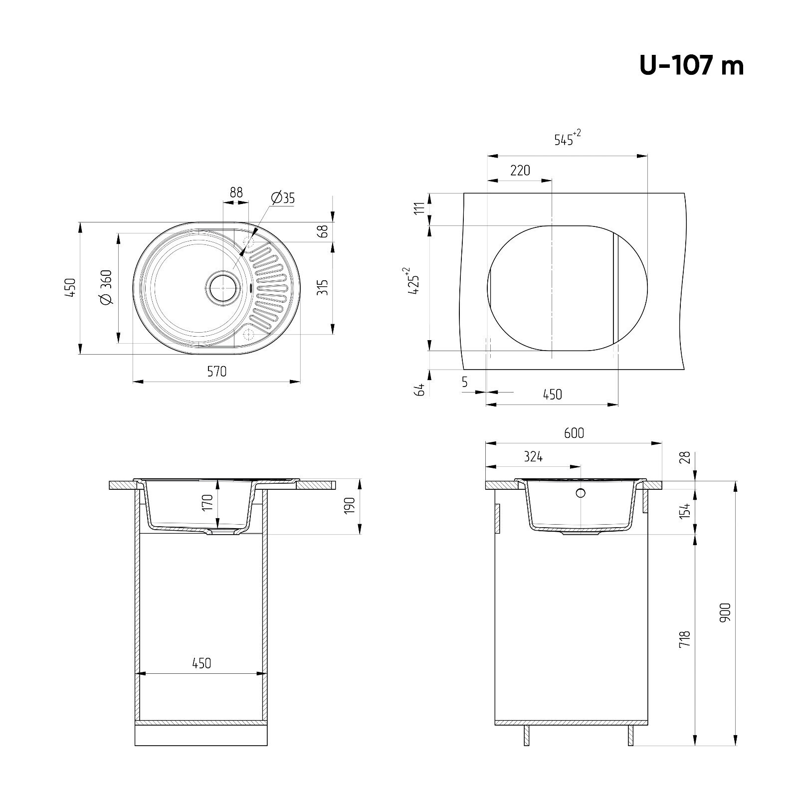 - Тип установки мойки Врезная