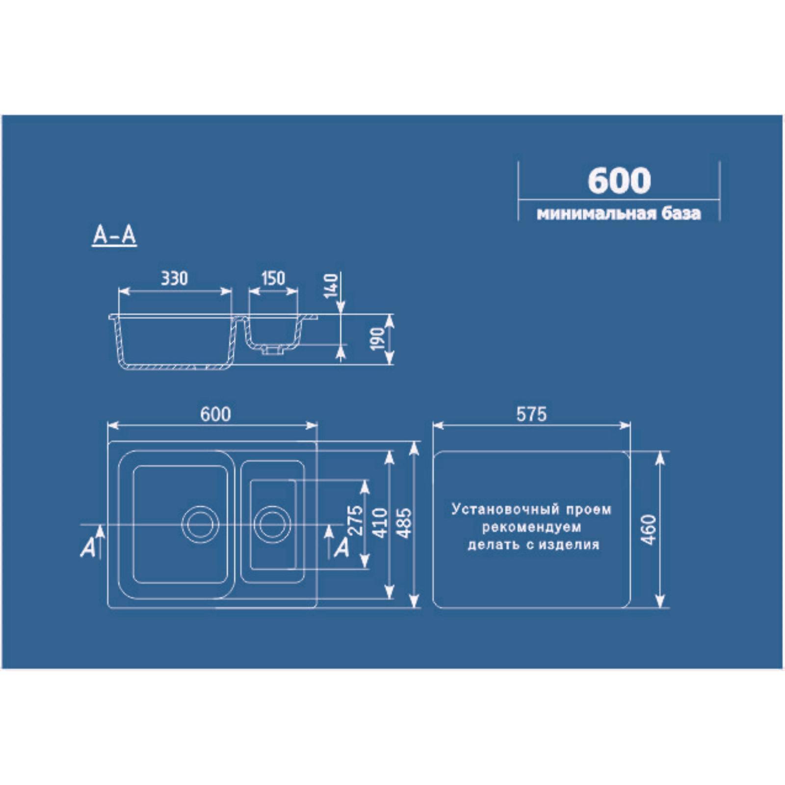 Двухсекционная прямоугольная реверсивная мойка Ulgran U-106.