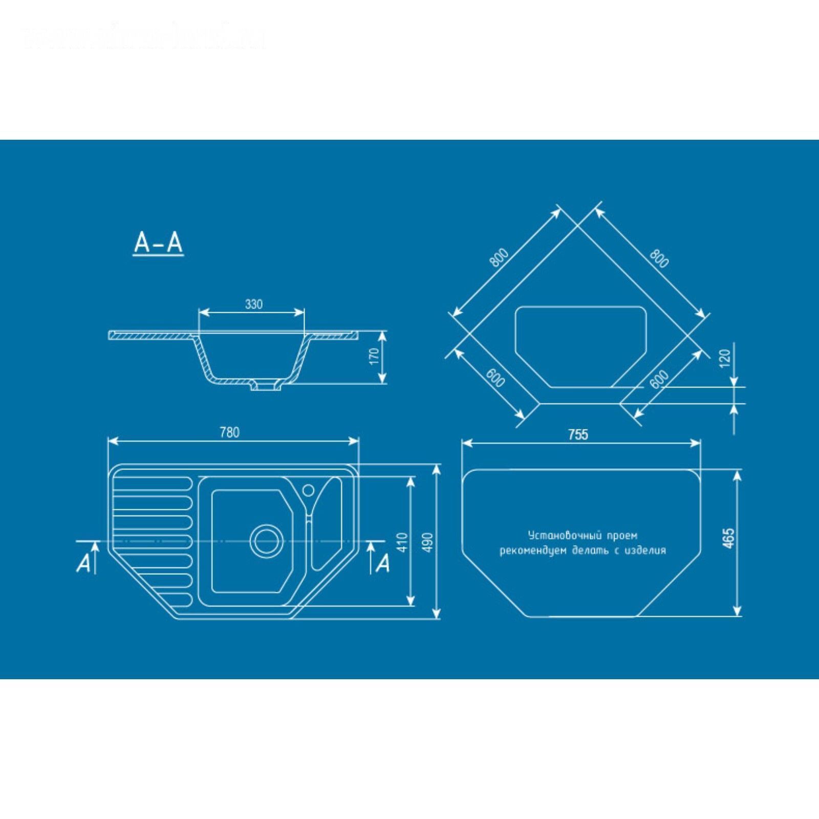 Самая компактная угловая мойка с боковым крылом. Модель U-109 поместится в угловой проём практически любой кухни.