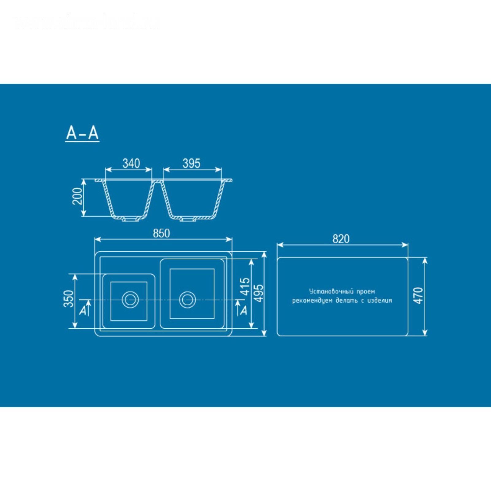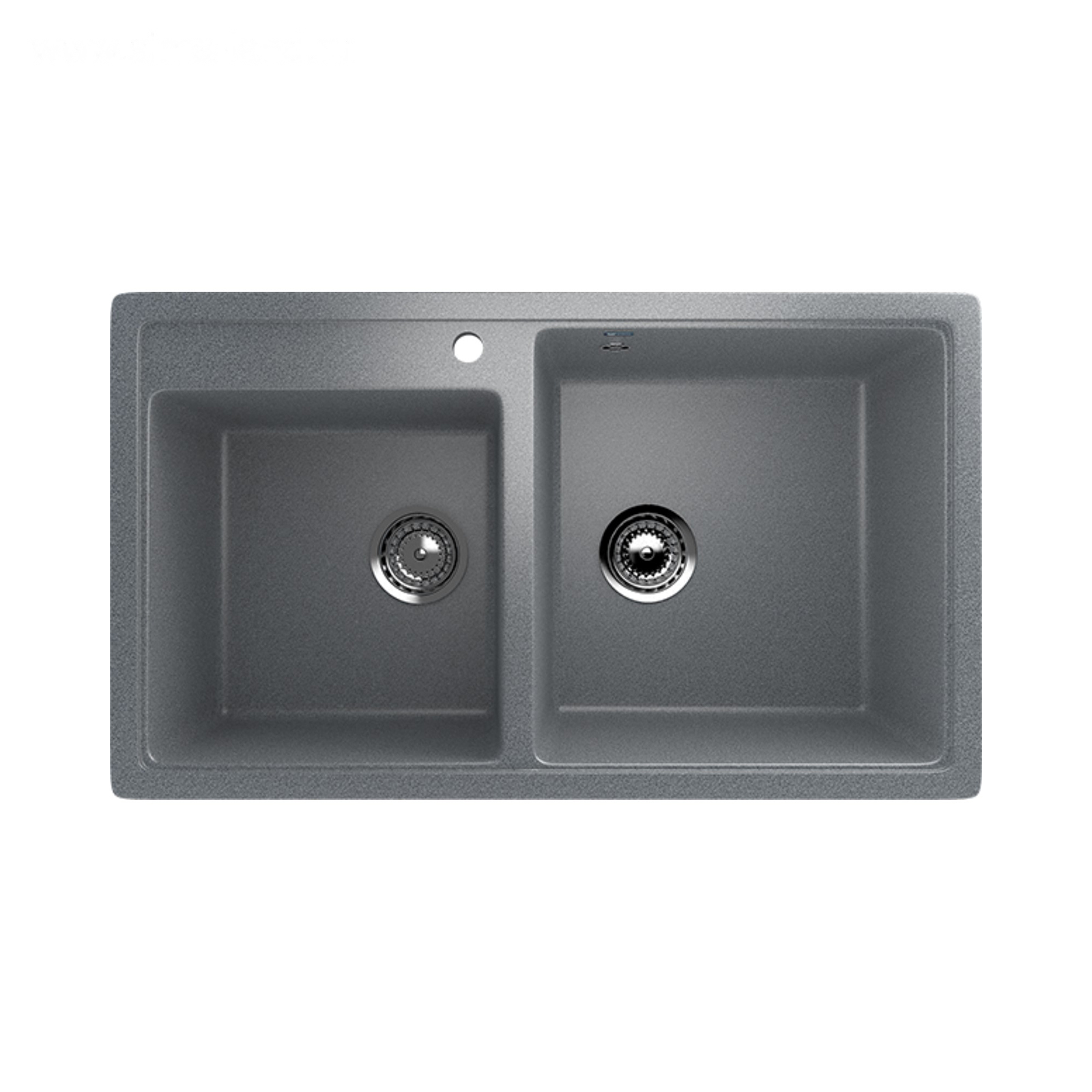 Двухсекционная кухонная мойка с отверстием под смеситель изготовлена из искусственного камня. Материал на 80 % состоит из натурального мрамора и на 20 % из полимеров.