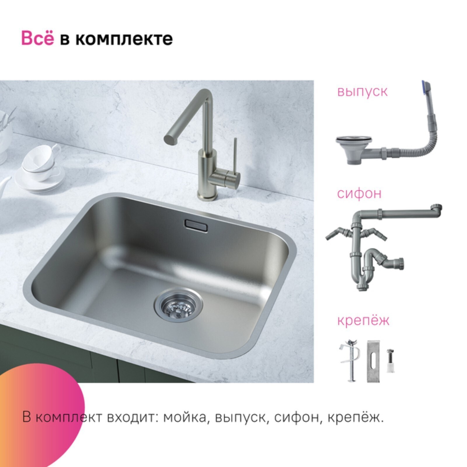 Мойка для кухни IDDIS Mate, 533х433 мм, цвет сатин, нержавеющая сталь