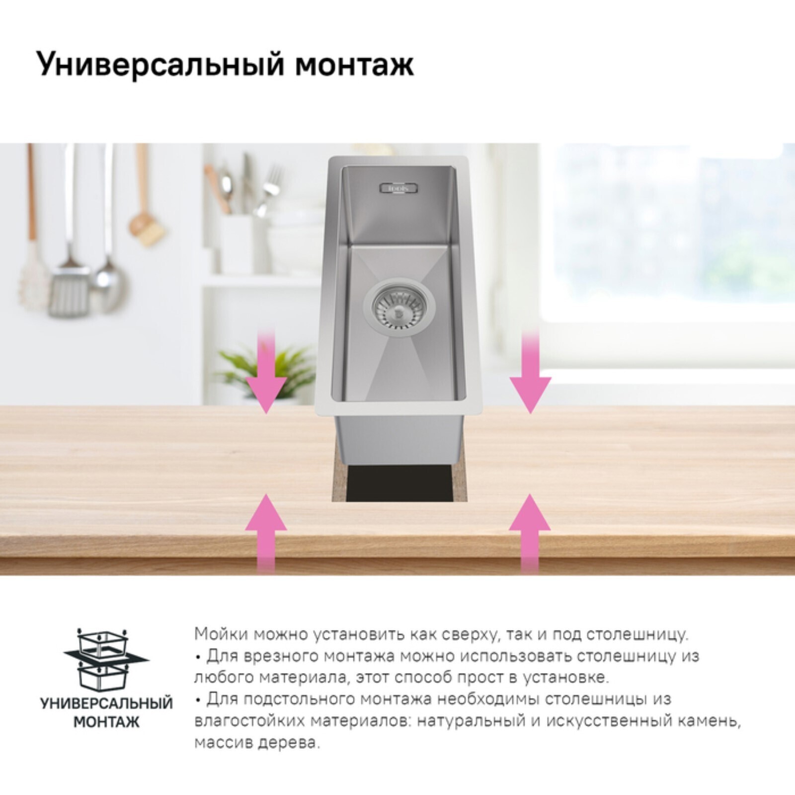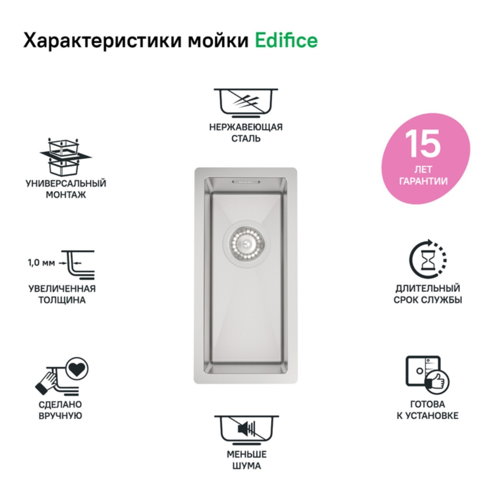 Мойка для кухни IDDIS Edifice, 210х440 мм, цвет сатин, нержавеющая сталь