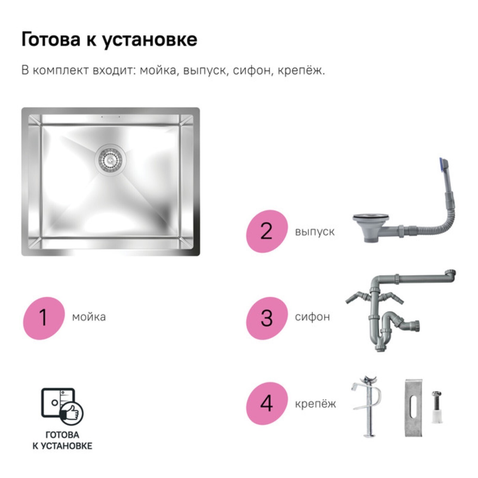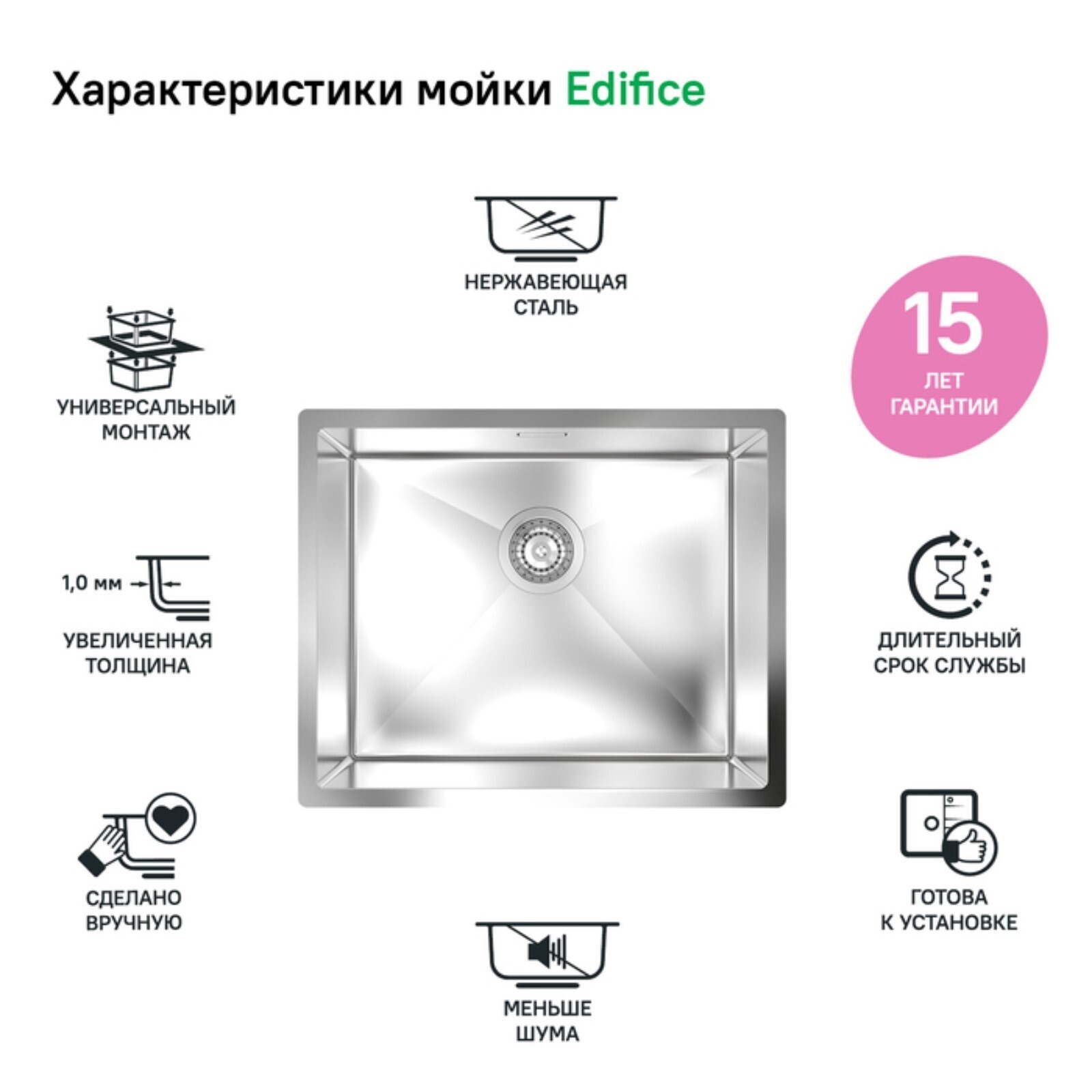 Мойка для подстольного монтажа IDDIS Edifice EDI54S0i77, 540х440х200 мм, нержавеющая сталь 1016682