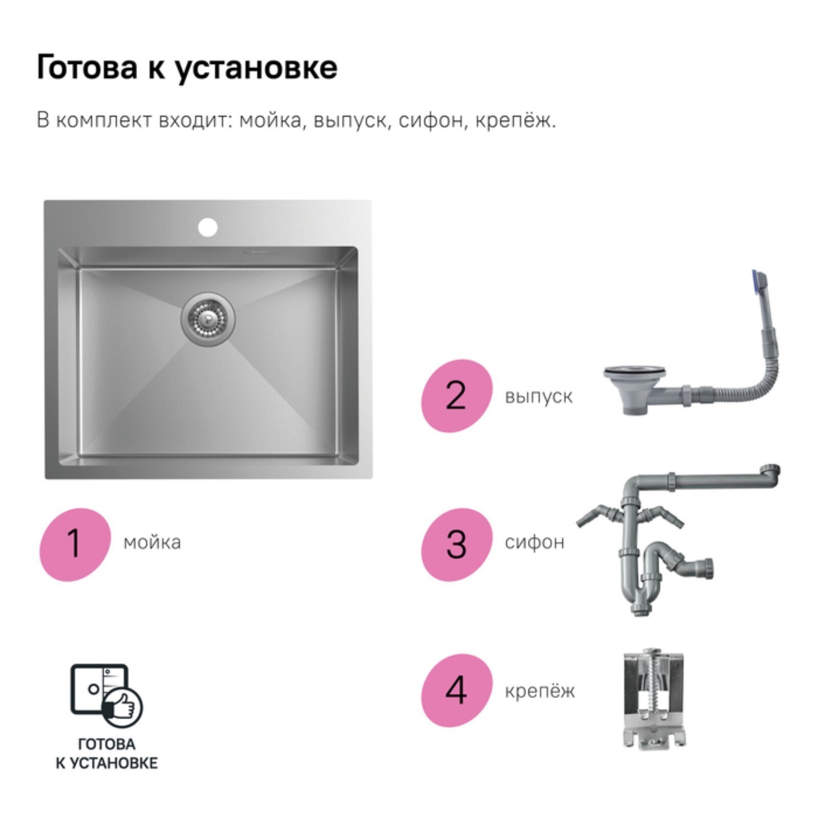 Мойка для кухни IDDIS Haze, 590х510 мм, цвет сатин, нержавеющая сталь