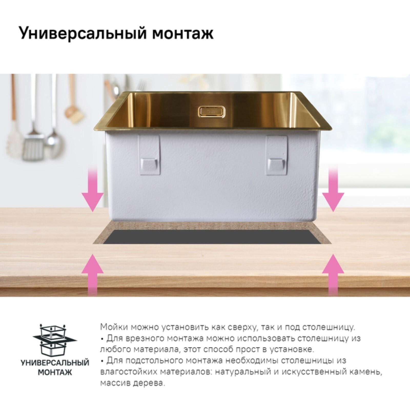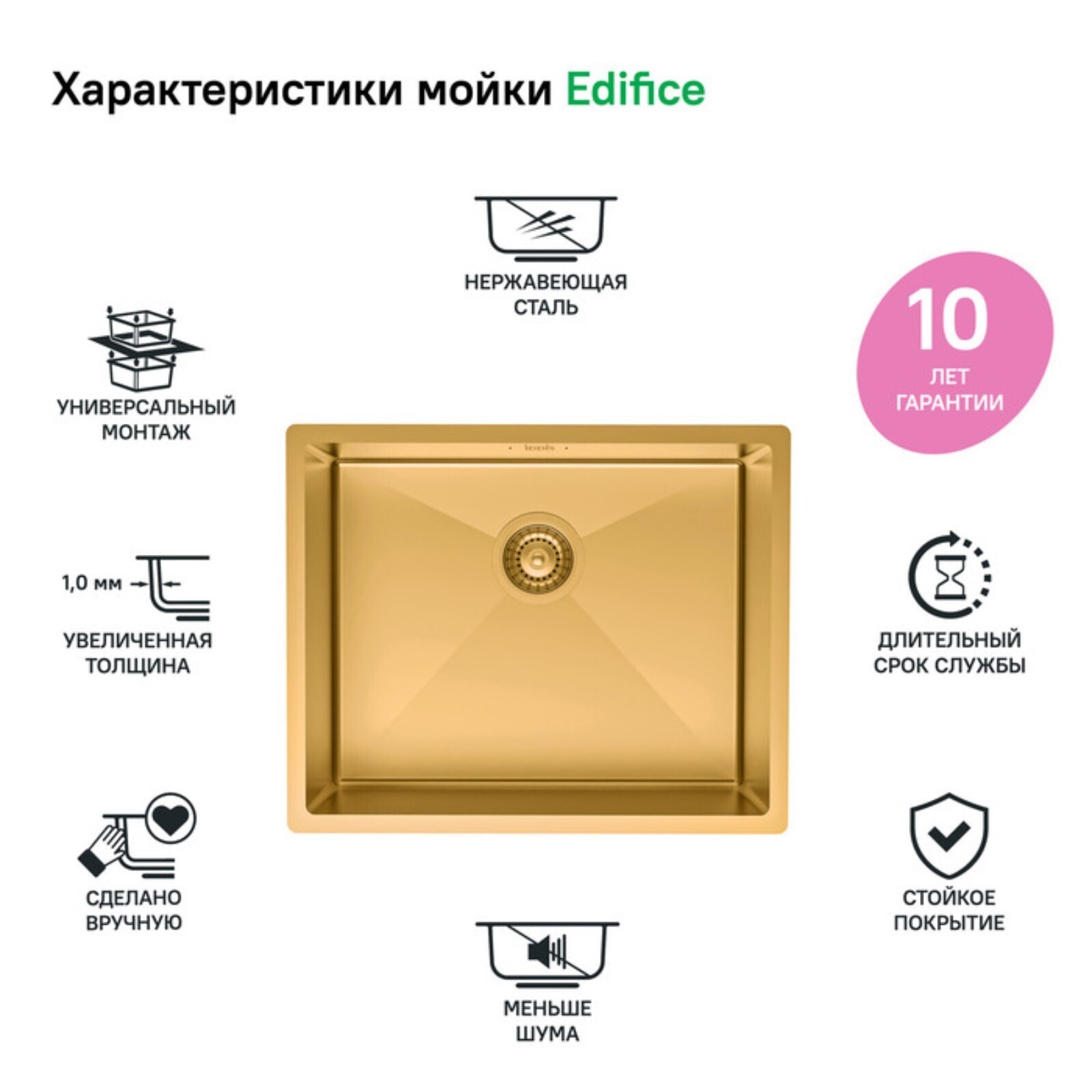 Мойка для кухни IDDIS Edifice, 540х440 мм, цвет матовое золото, нержавеющая сталь