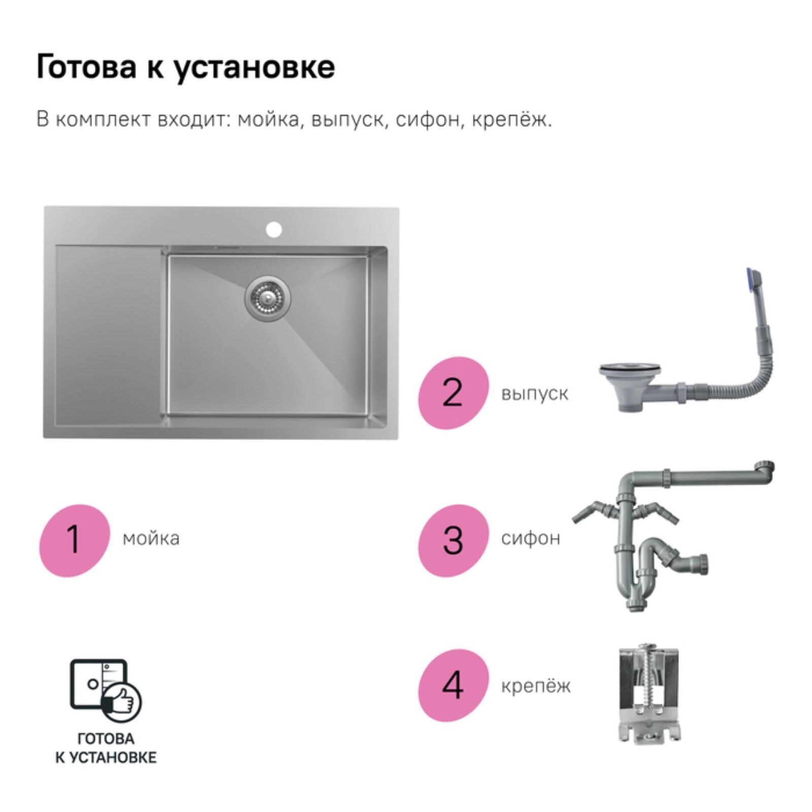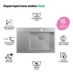 Мойка для кухни IDDIS Haze, 510х780 мм, чаша справа, цвет сатин, нержавеющая сталь