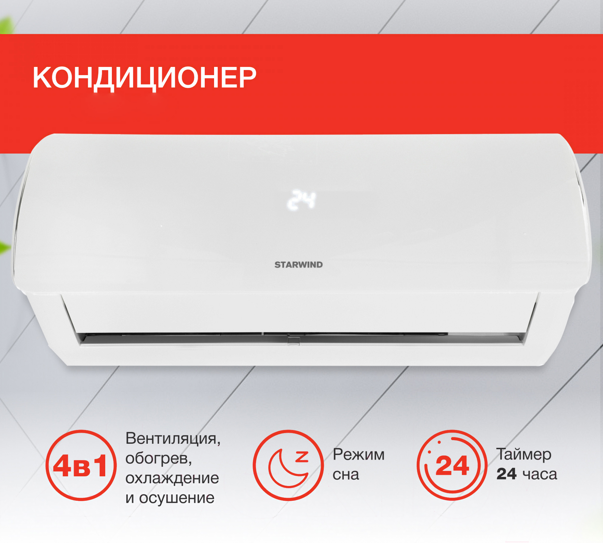 • Режим работы охлаждение, обогрев, вентиляция, осушение, автоматический, сон (тишина), турбо-режим