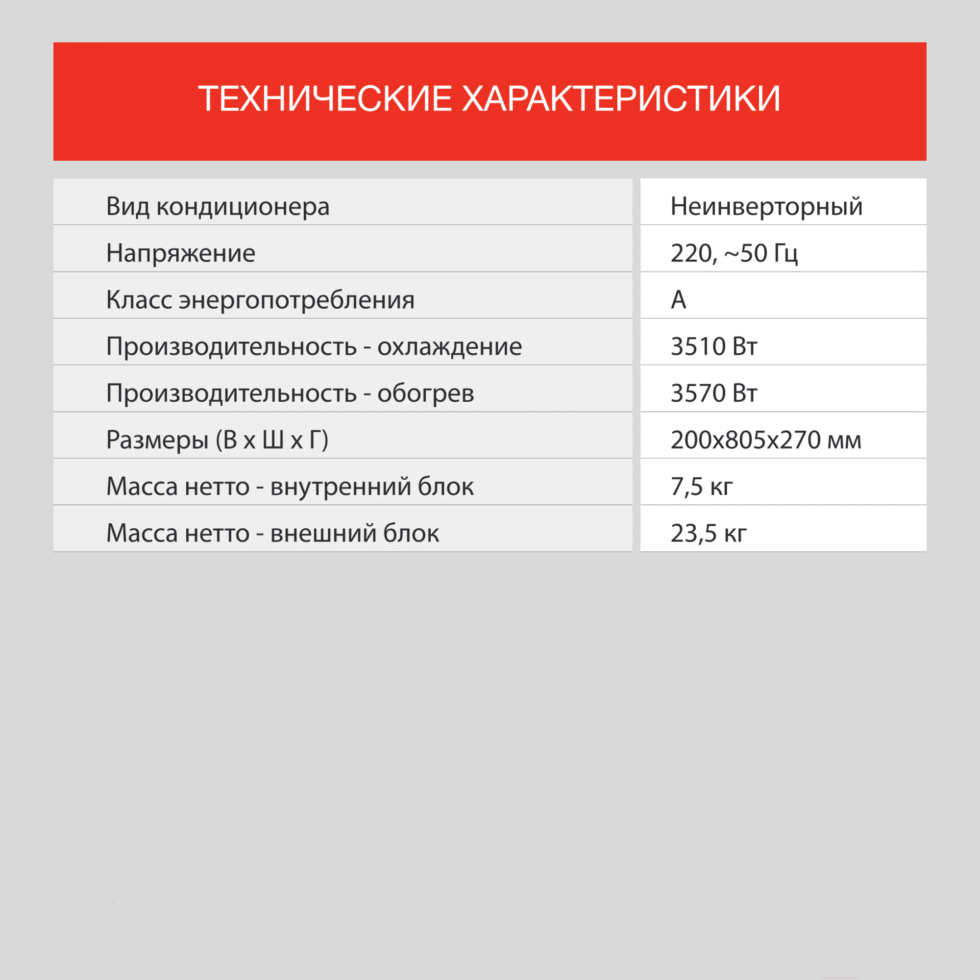 • Размеры внутреннего блока (ВхШхГ) 200×805×270 мм