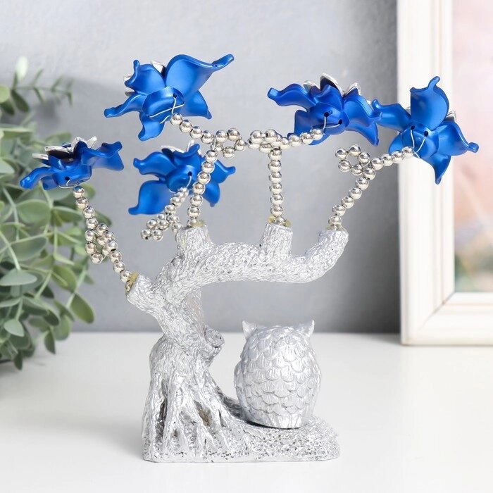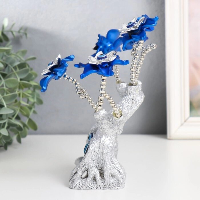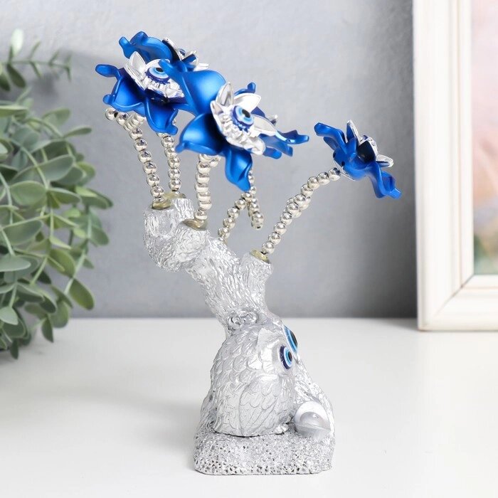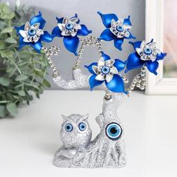 Сувенир от сглаза "Цветущее дерево. Филин со слитком золота" серебро, синий 16х5,5х18,5 см