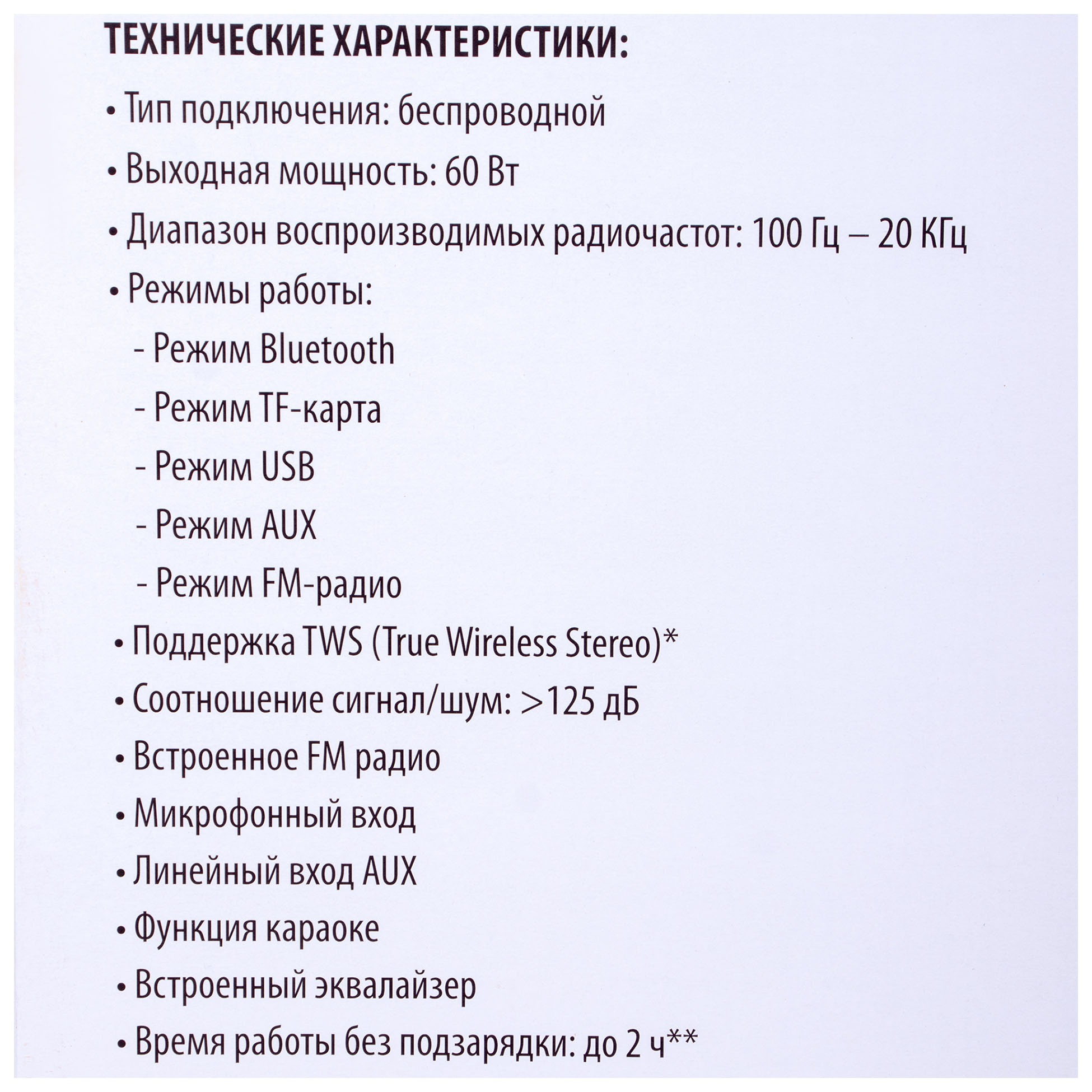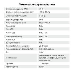 • Суммарная мощность (RMS) 60 Вт