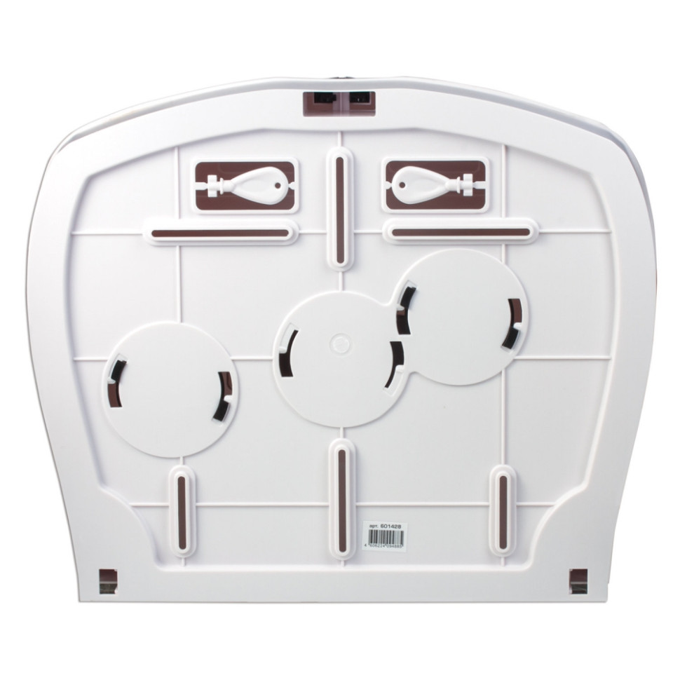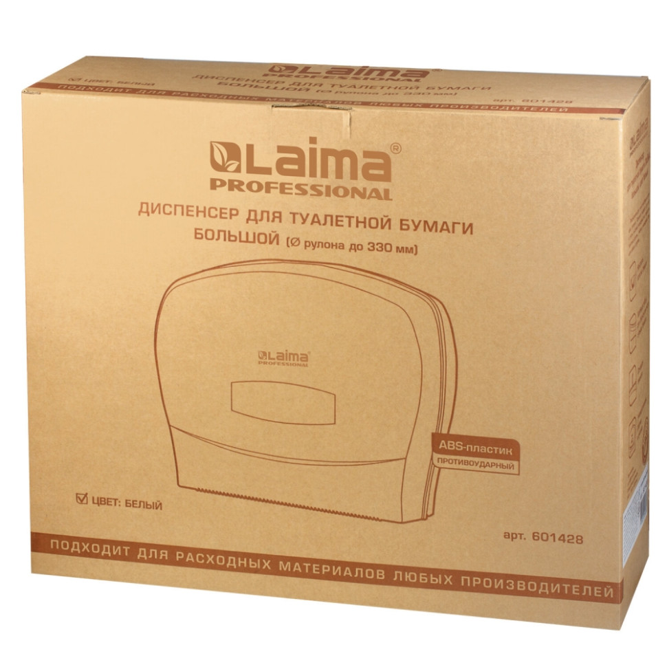 Диспенсер для туалетной бумаги LAIMA PROFESSIONAL подходит для использования в местах с любой проходимостью, таких как туалетная комната в ресторане, офисе, торговом центре, аэропорту и т.д. Отличается высокими эксплуатационными характеристиками. Антивандальный корпус изготовлен из ABS-пластика. Обеспечивает высокий уровень гигиены и комфортную подачу туалетной бумаги. Имеется окошко для контроля остатка расходных материалов. Сочетается с расходными материалами других производителей. Оборудован замком с ключом. В комплект входят крепежные материалы для установки. Особенностью данного диспенсера является возможность сочетать два вида расходных материалов благодаря наличию съемных втулок: либо один рулон с длиной намотки до 525 м, либо один рулон с длиной намотки до 200 м плюс запасной рулон частично израсходованный. Размер - 348х428х130 мм.Преимущества диспенсера для туалетной бумаги LAIMA PROFESSIONAL:1) Гигиеничность. Расходные материалы находятся внутри корпуса, их не касаются руки пользователей, на них не попадает грязь и капли воды. 2) Стильный и элегантный корпус белого цвета прекрасно впишется в интерьер помещения. 3) Легкость и простота в эксплуатации. 4) Не требует особого ухода. 5) Надежность конструкции. 6) Повышенная емкость диспенсера приводит к меньшему интервалу обслуживания. Вид расходных материалов: рулонный. Диспенсерная система: T1, T2. Вместимость: 2 пач./рулонов. Материал корпуса: ударопрочный пластик ABS. Цвет корпуса: белый. Тип закрывания: пластиковый ключ. Комплектация: крепежные материалы, лекало для установки. Контроль остатка бумаги: да. Ширина: 428 мм. Высота: 348 мм. Глубина: 130 мм. Артикул: 601428. Серия: CLASSIC. Удобные зубцы для бесконтактного отрыва бумаги: да. Материал замка: пластик. Самозахлопывающийся замок: да. Антивандальный корпус: да Бренд - LAIMA. Производитель - Китай. Артикул - 601428. Штрихкод - 4606224094885