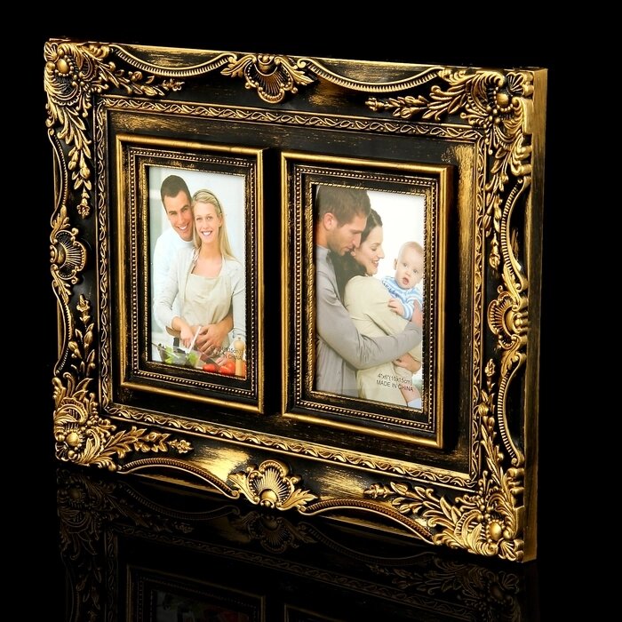 Фоторамка пластик на 2 фото 10х15 см "Герб ажурный" под бронзу 40х30,5 см