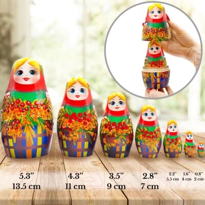 Матрешка сувенирная Брестская Фабрика Сувениров С русскими мотивами и ветвями рябины / 7040