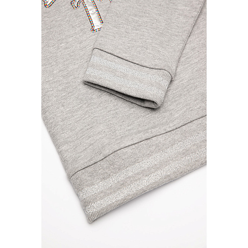 Стильный, однотонный свитшот украшен металлизированным принтом в виде надписи. Низ свитшот и рукава - на широкой резиночке для удобного прилегания. Выполнен из натурального неаллергенного материала, мягкий и приятный на ощупь